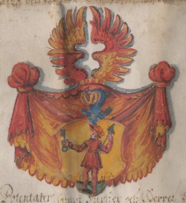 Sköldebrevet i original för utdöda adliga ätten Langman, nr 203.