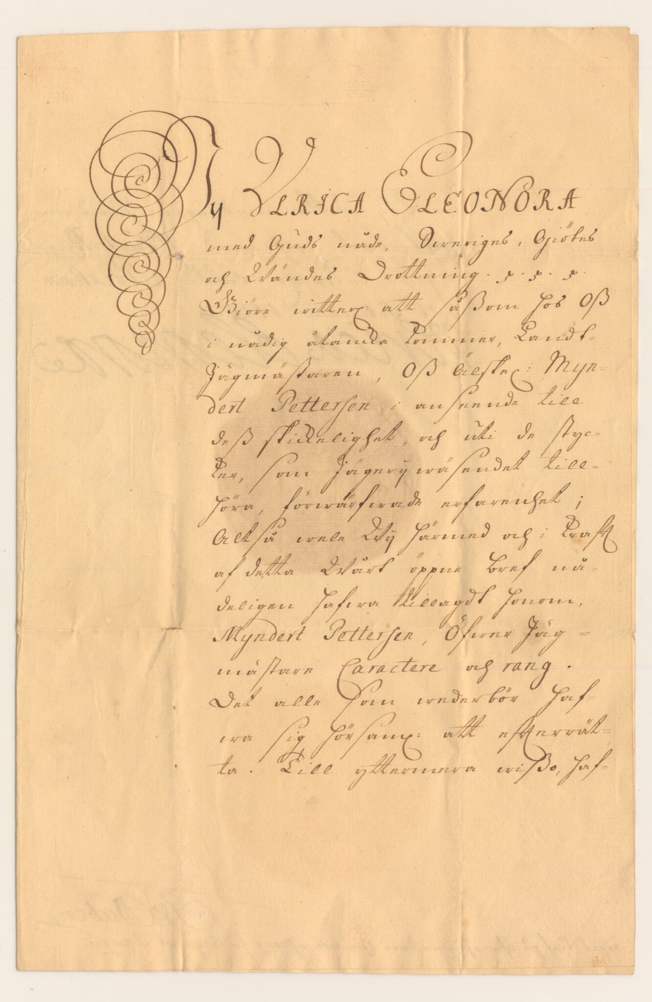 2. Öppet brev, Myndert Petterssen, 1720-02-27, Ulrika Eleonora d y, 01.