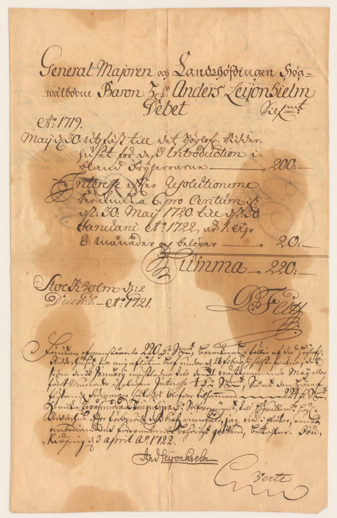 Friherrebrevet i original för friherrliga ätten Leijonhielm, nr 142.
