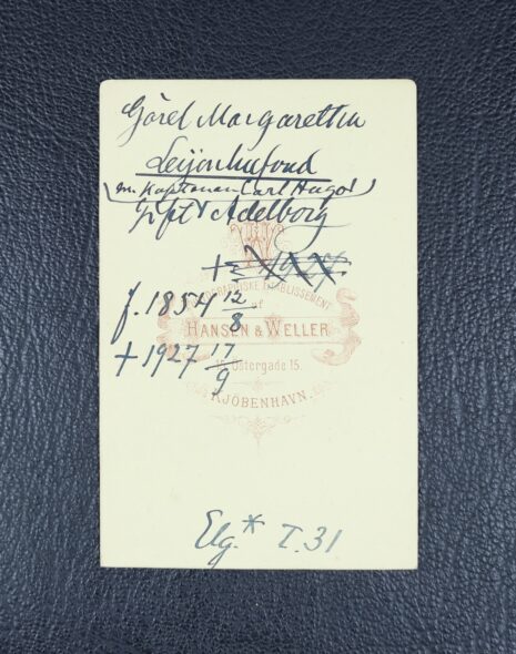 Adelborg, Görvel Margareta (GÖREL), född friherrinna Leijonhufvud, nr 26. Född 1854-08-12. Död 1927-09-17.