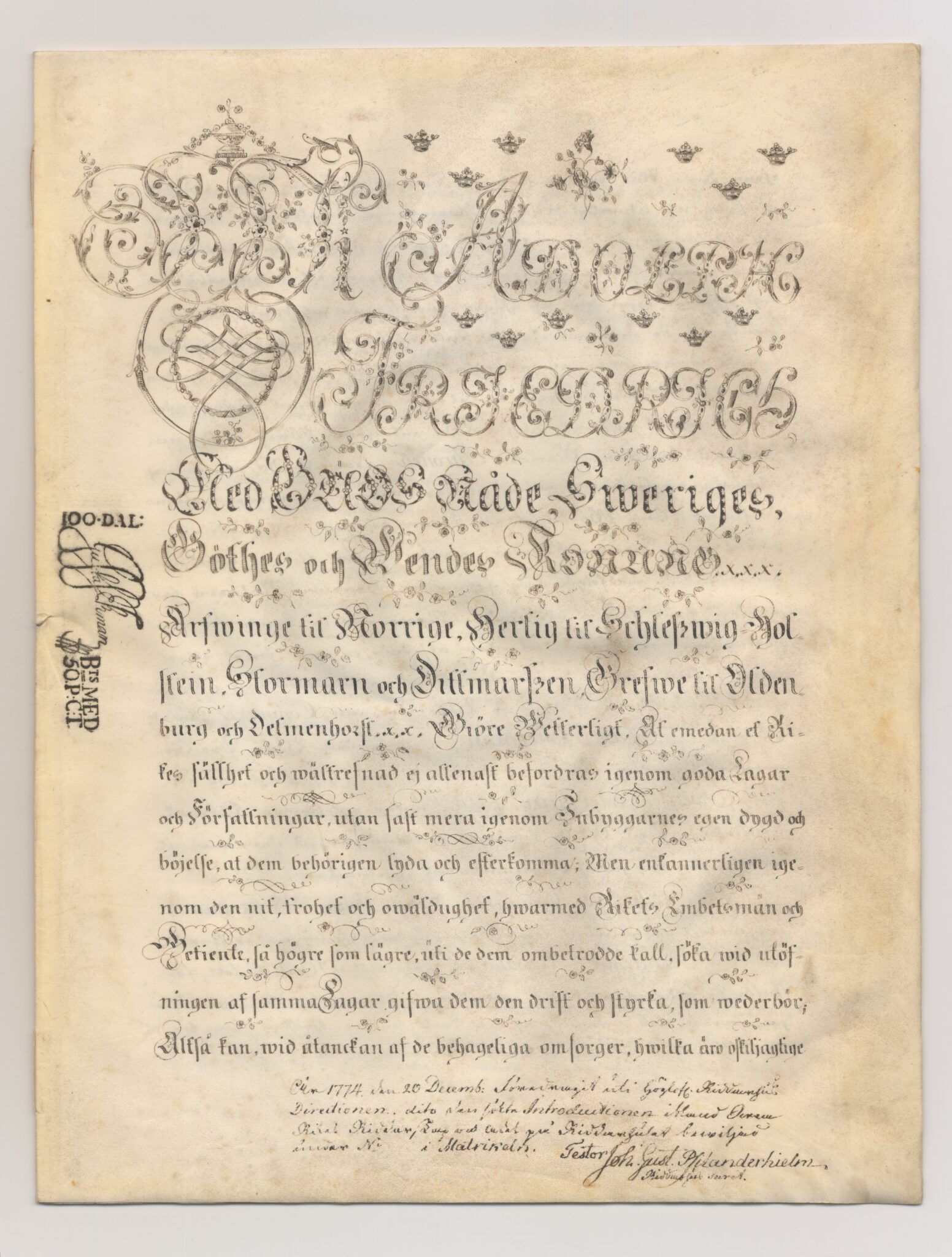 Utfärdat: Gustav III, plats och datum ej angivet.