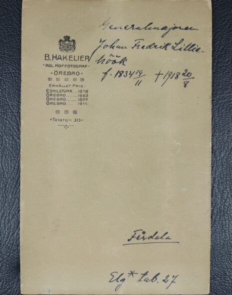Lilliehöök af Fårdala, Johan (JOHN) Fredrik. Född 1834-11-19. Död 1918-08-20.