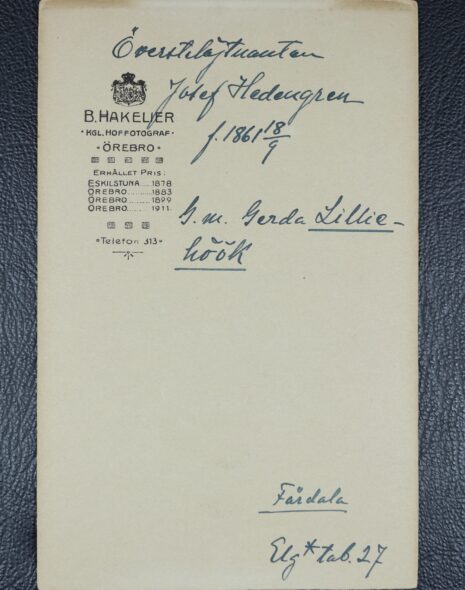 Hedengren, Josef, ingift Lilliehöök af Fårdala. Född 1861-09-18. Död 1947-11-21.