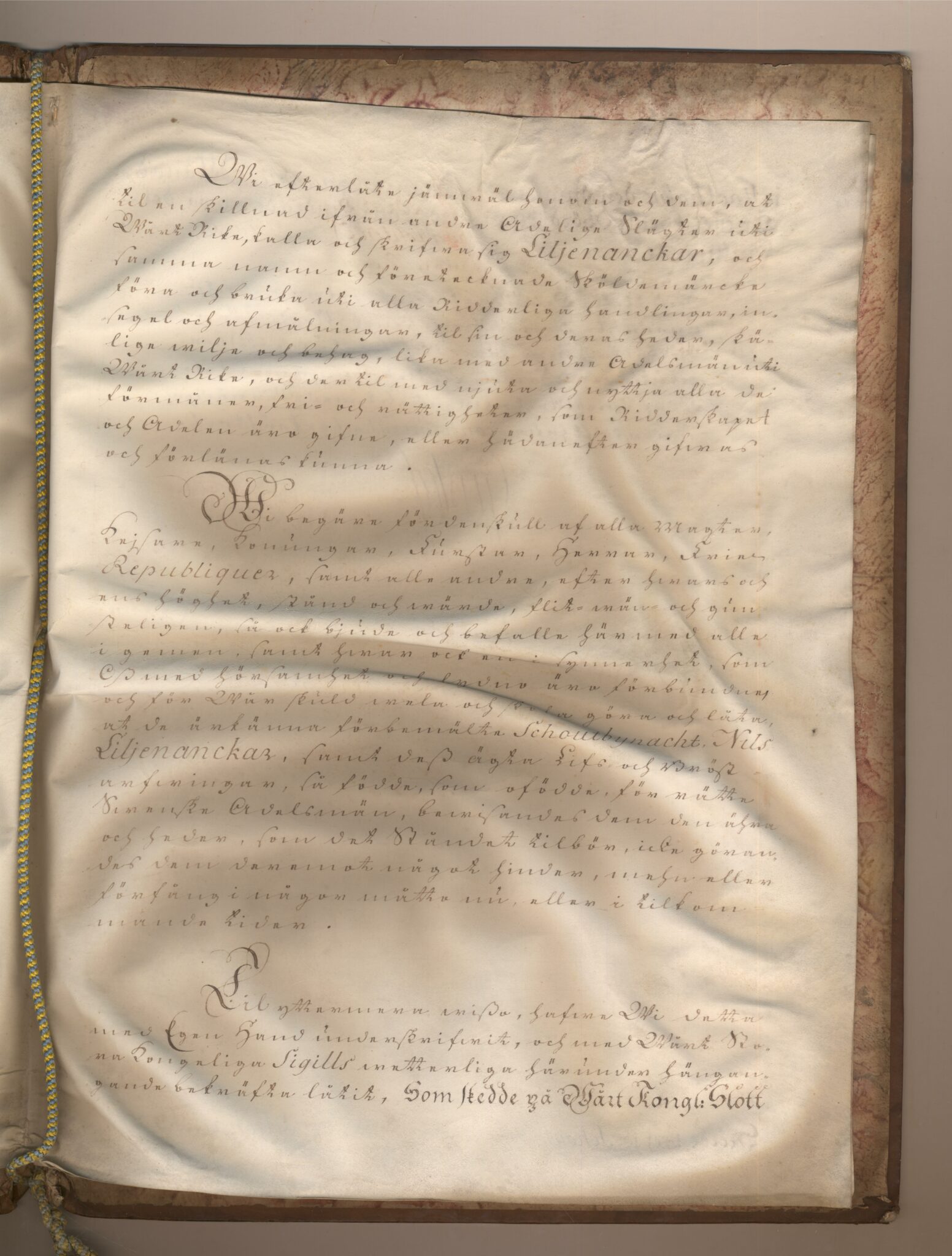 Sköldebrevet i original för utdöda adliga ätten Lillienanckar, nr 1994.