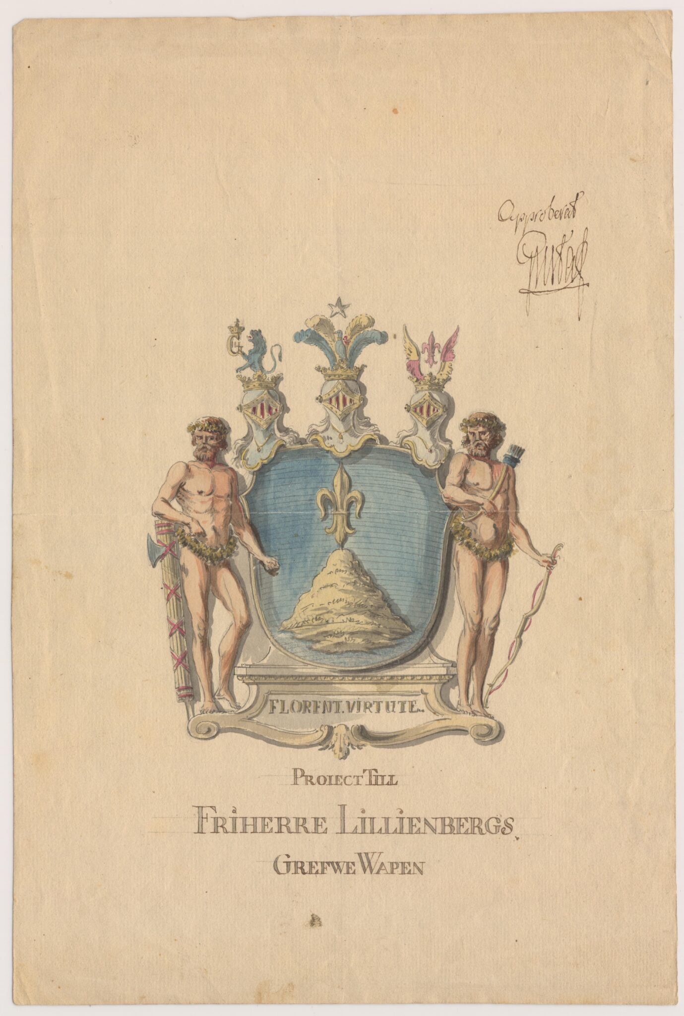 Approberad vapenritning för utdöda grevliga ätten Lillienberg, nr 101.
