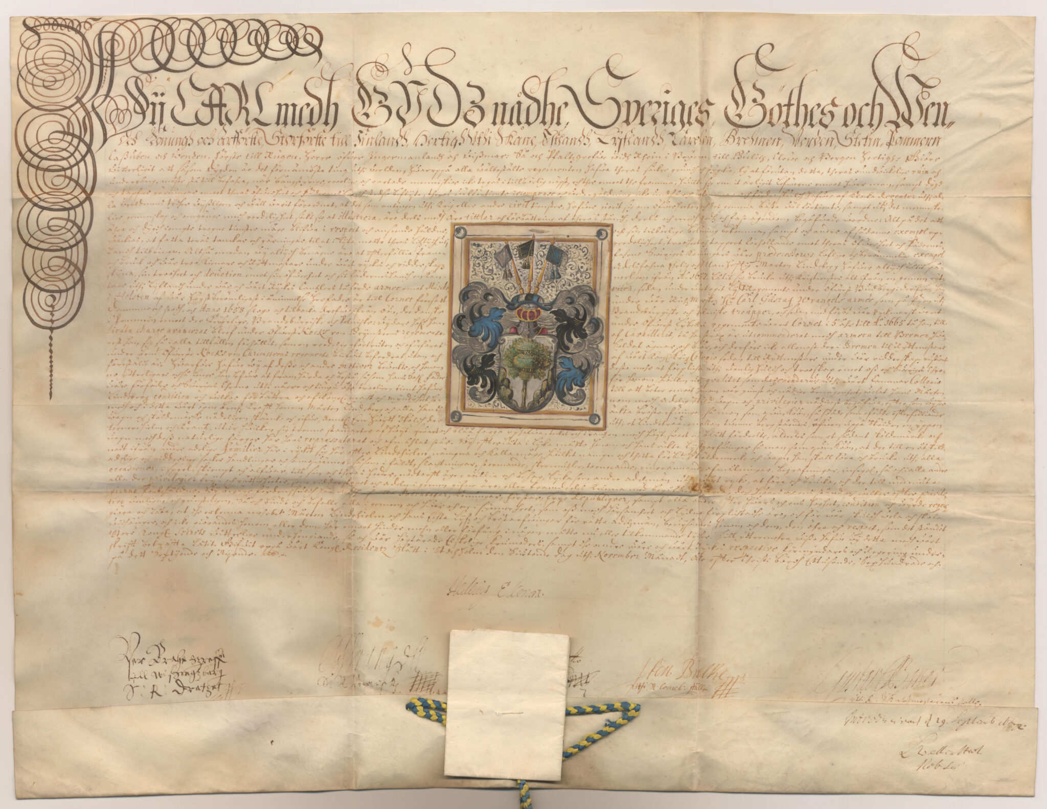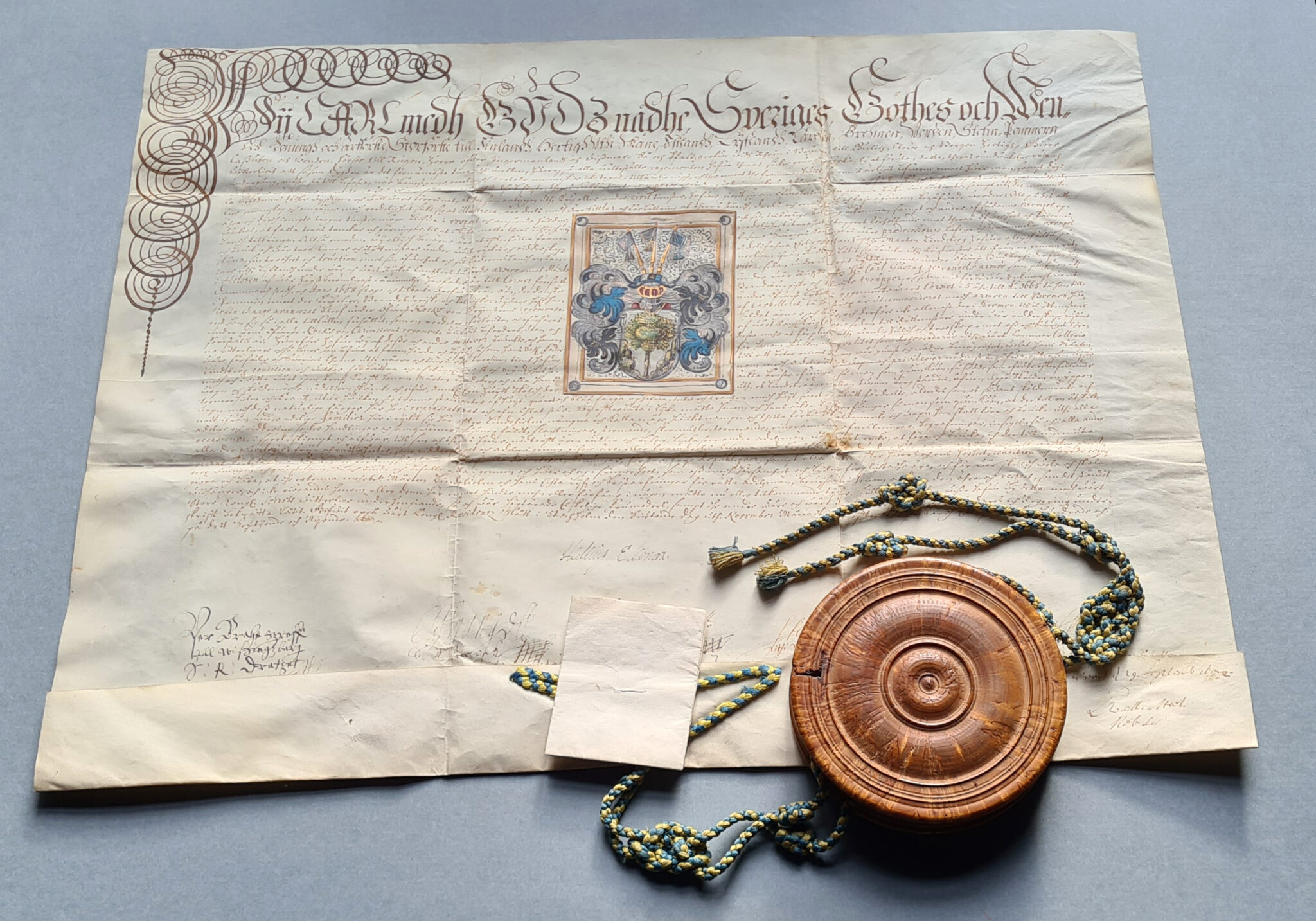 Sköldebrevet i original för utdöda uteslutna adliga ätten Lindehielm.