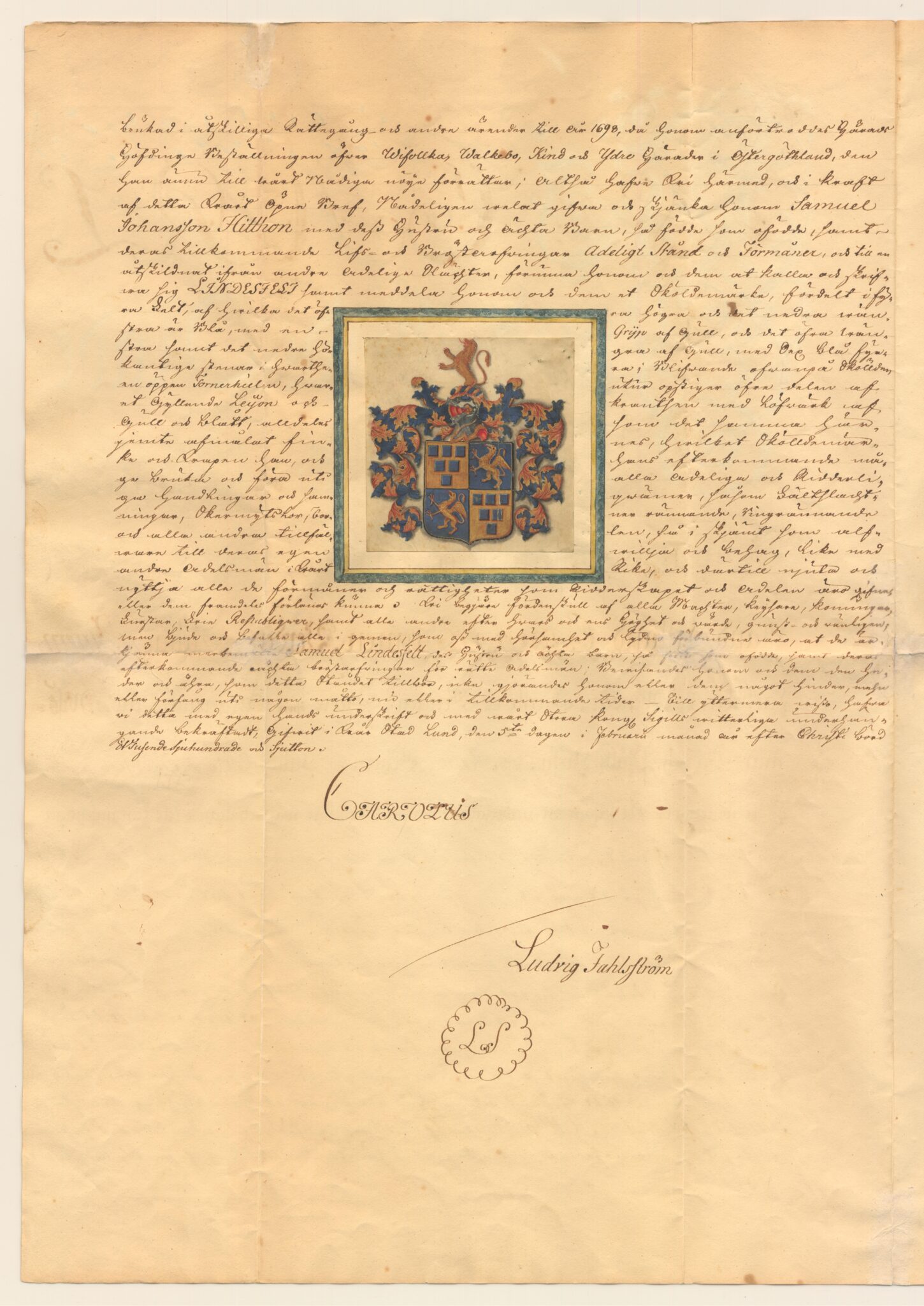 Sköldebrevskopia för utdöda adliga ätten Lindsfelt, nr 1524.