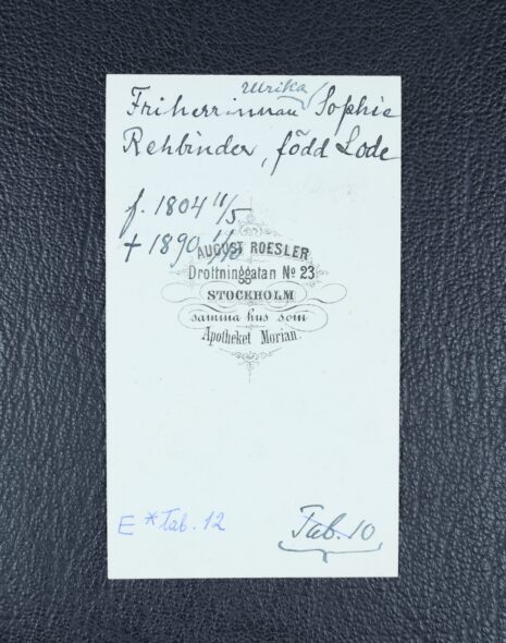 Lode från Livland, Ulrika Sofia, gift friherrinna Rehbinder, nr 77. Född 1804-05-11. Död 1890-10-01.