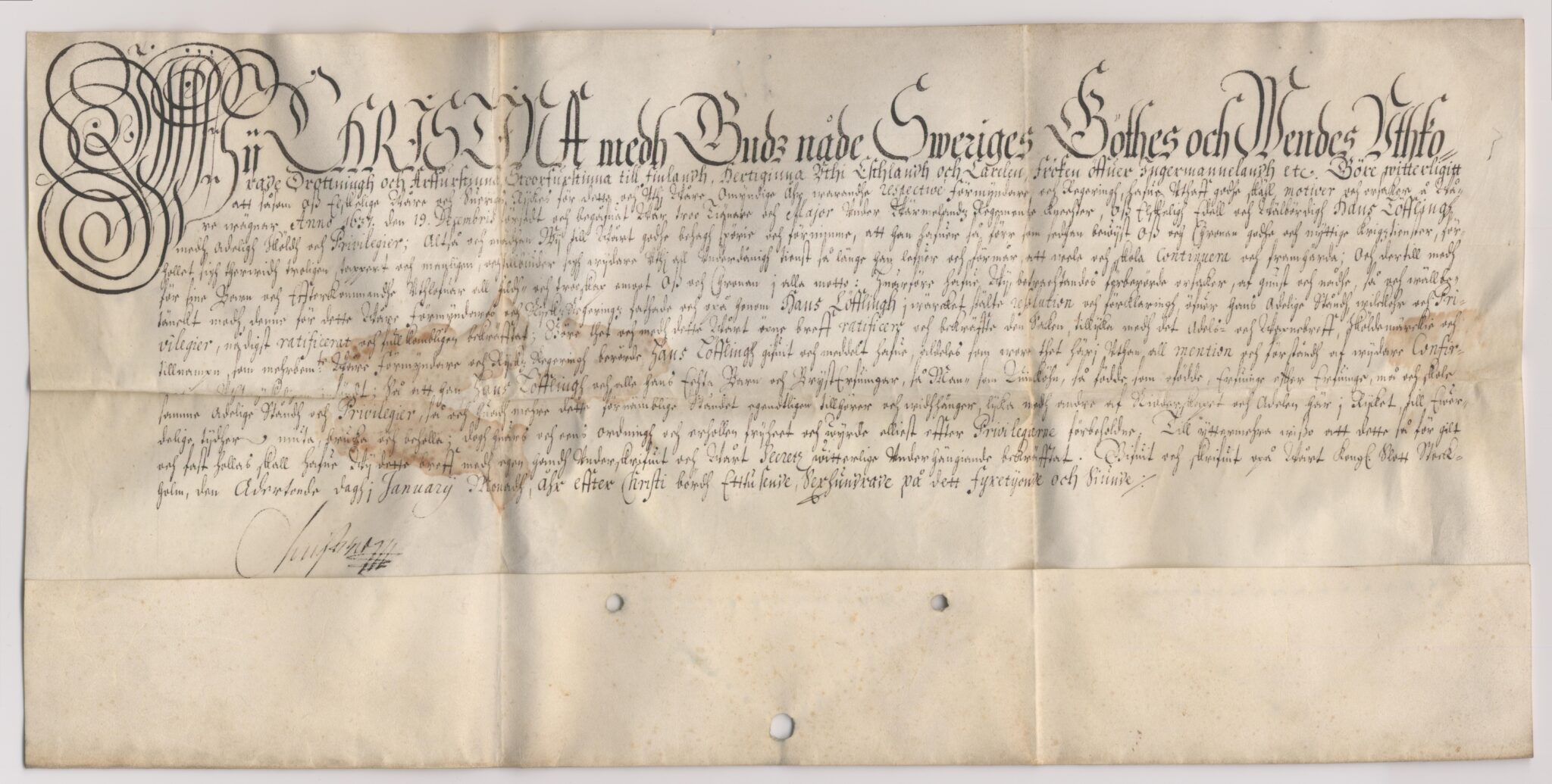 Utfärdat: Kristina, Stockholms slott, 1647-01-18.