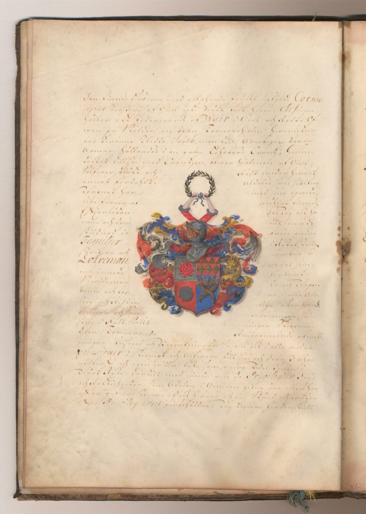 Sköldebrevet i original för utdöda adliga ätten Lohreman, nr 1172.