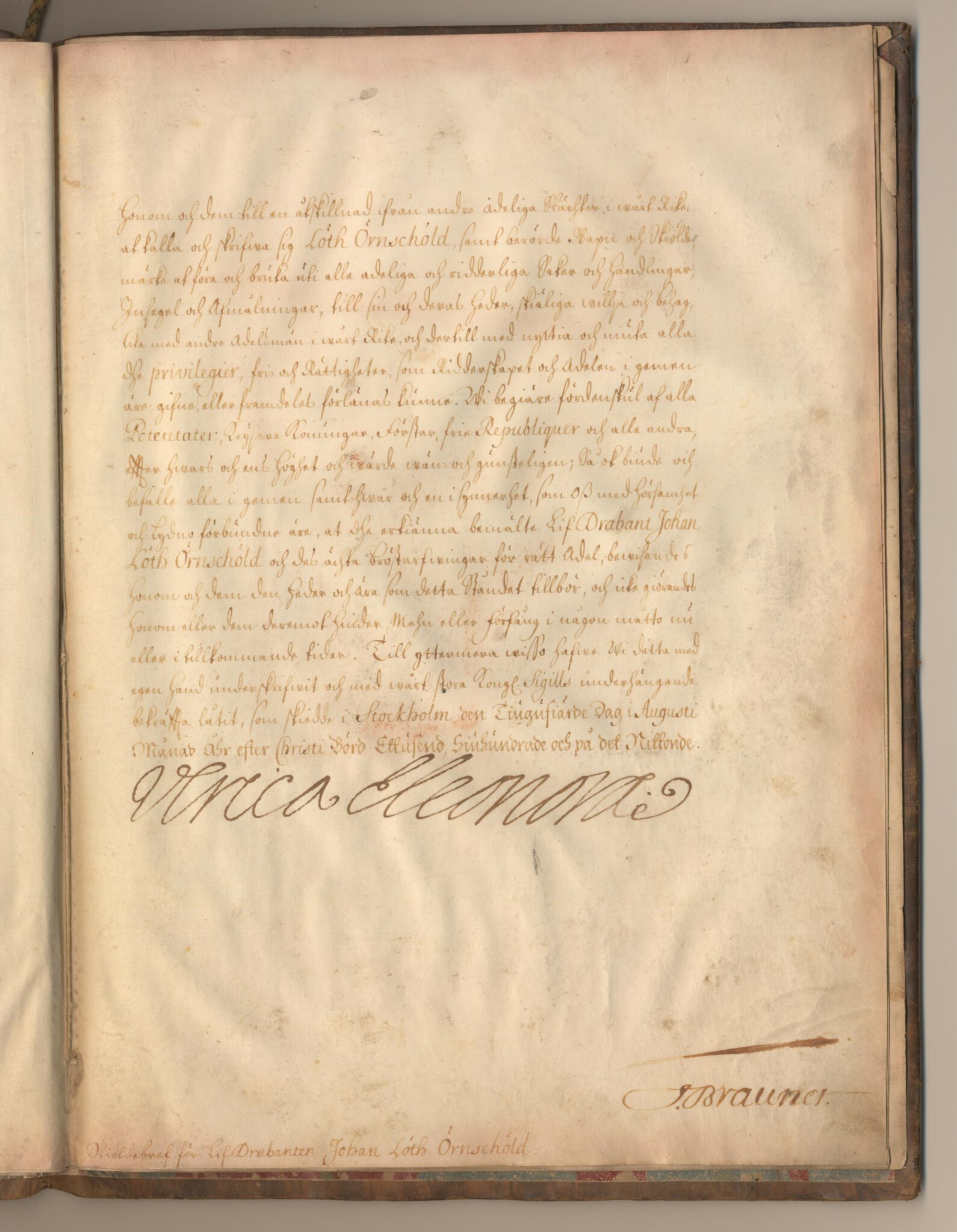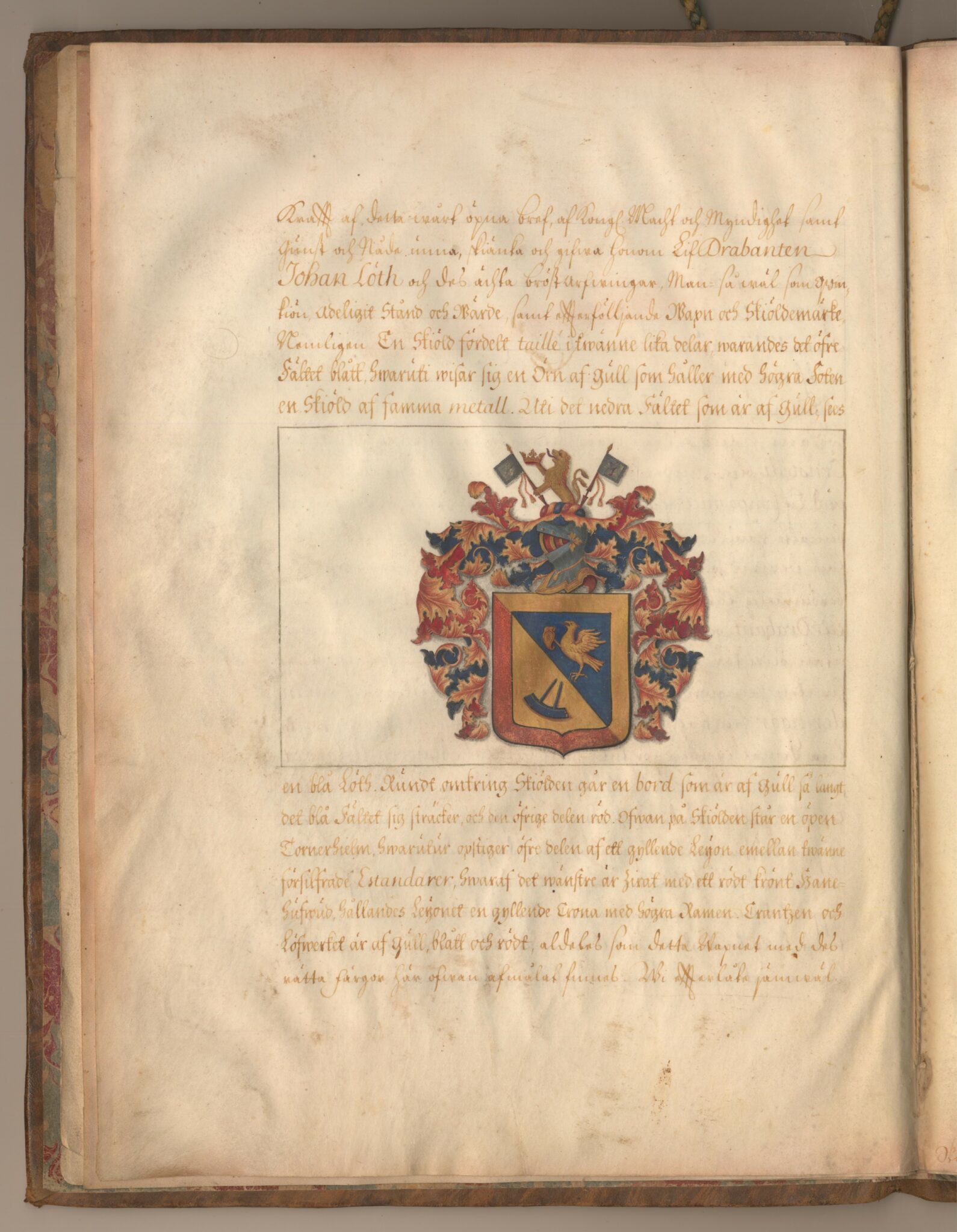 Sköldebrevet i original för utdöda adliga ätten Löth-Örnsköld, nr 1644.