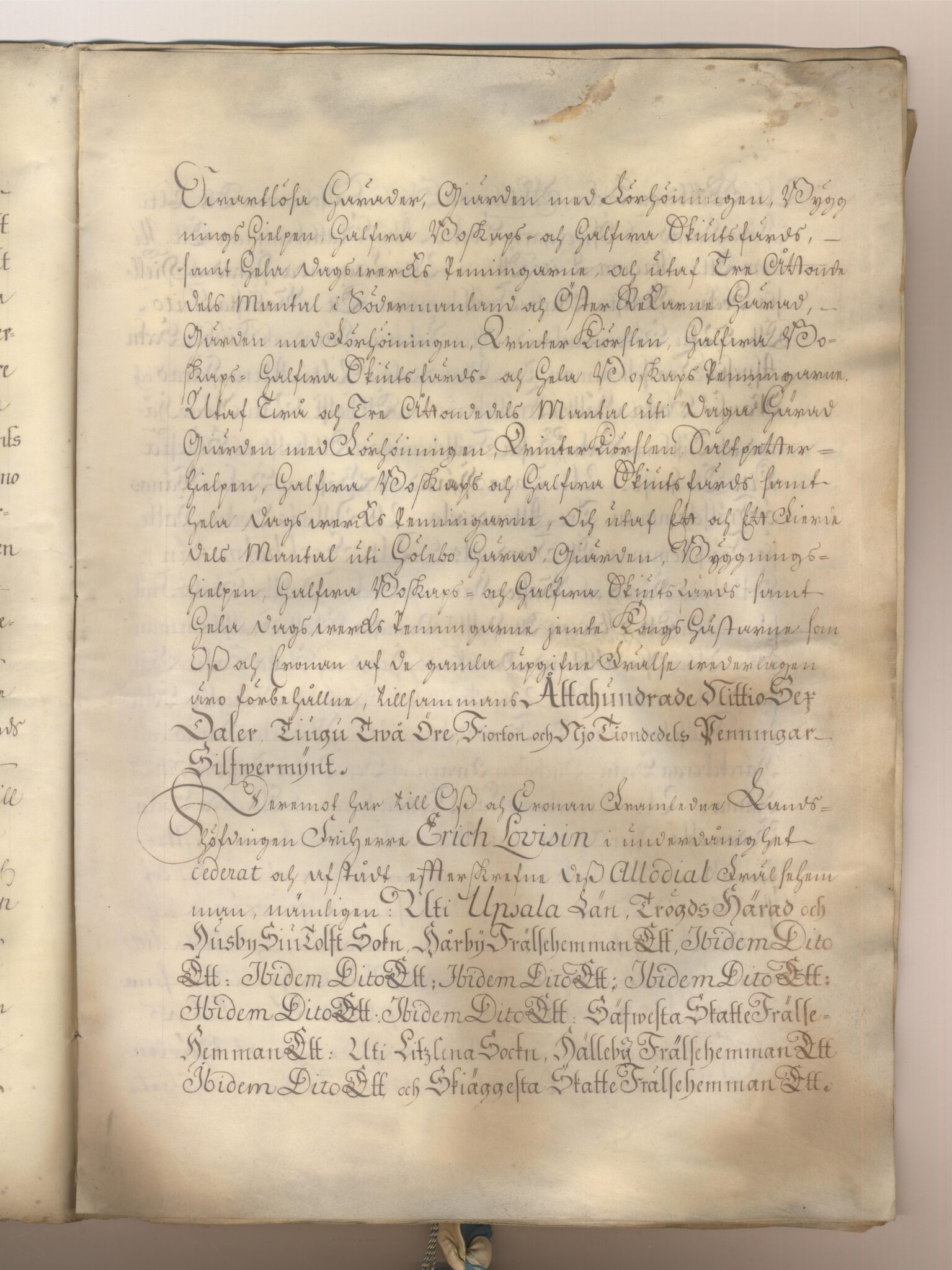 Bytesbrev för framlidne Landshöfdingen Baron Erik Lovisins Arfwingar.