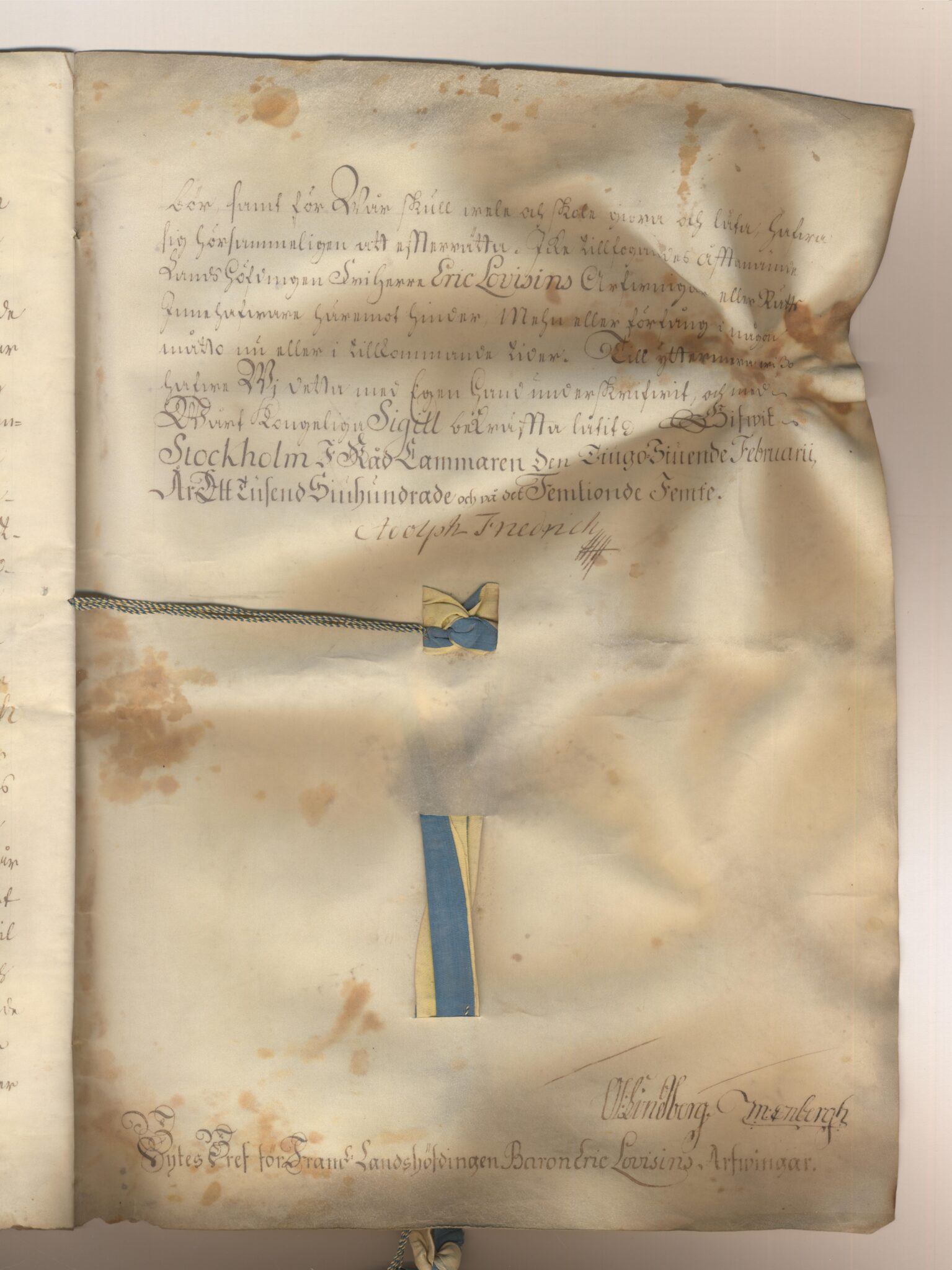 Utfärdat: Adolf Fredrik, Stockholms rådkammare, 1755-02-27.