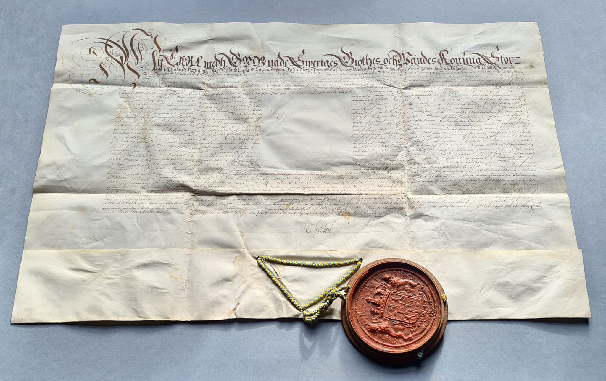 Sköldebrevet i original för utdöda uteslutna adliga ätten Lovisin.