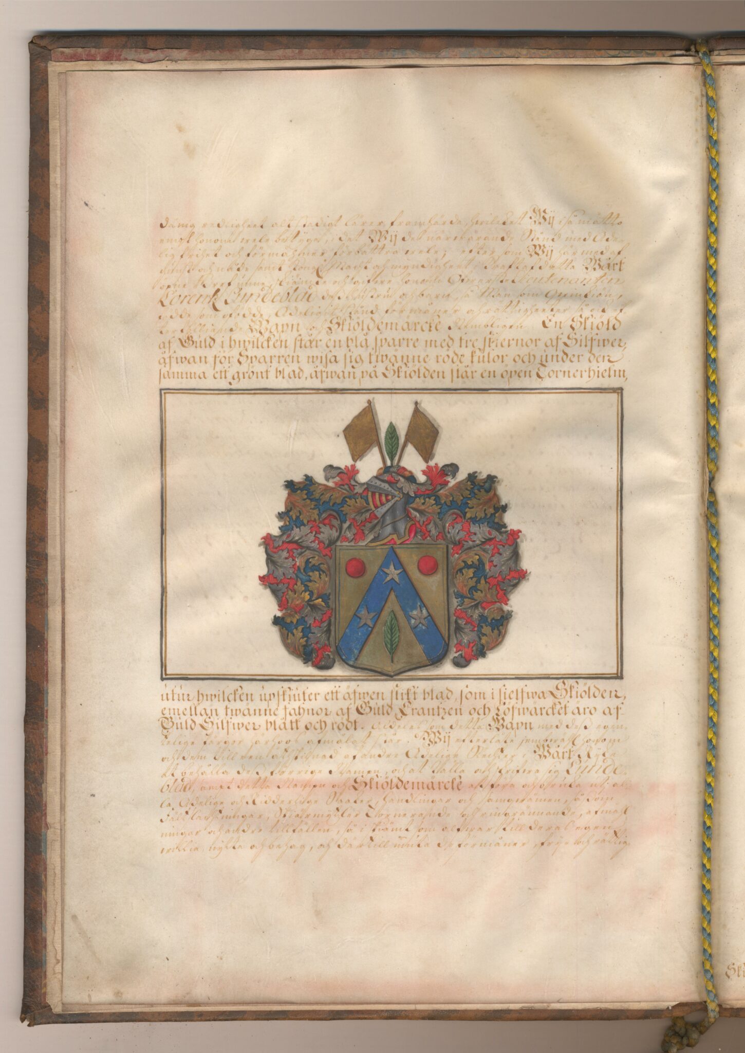 Sköldebrevet i original för utdöda adliga ätten Lundeblad, nr 1665.