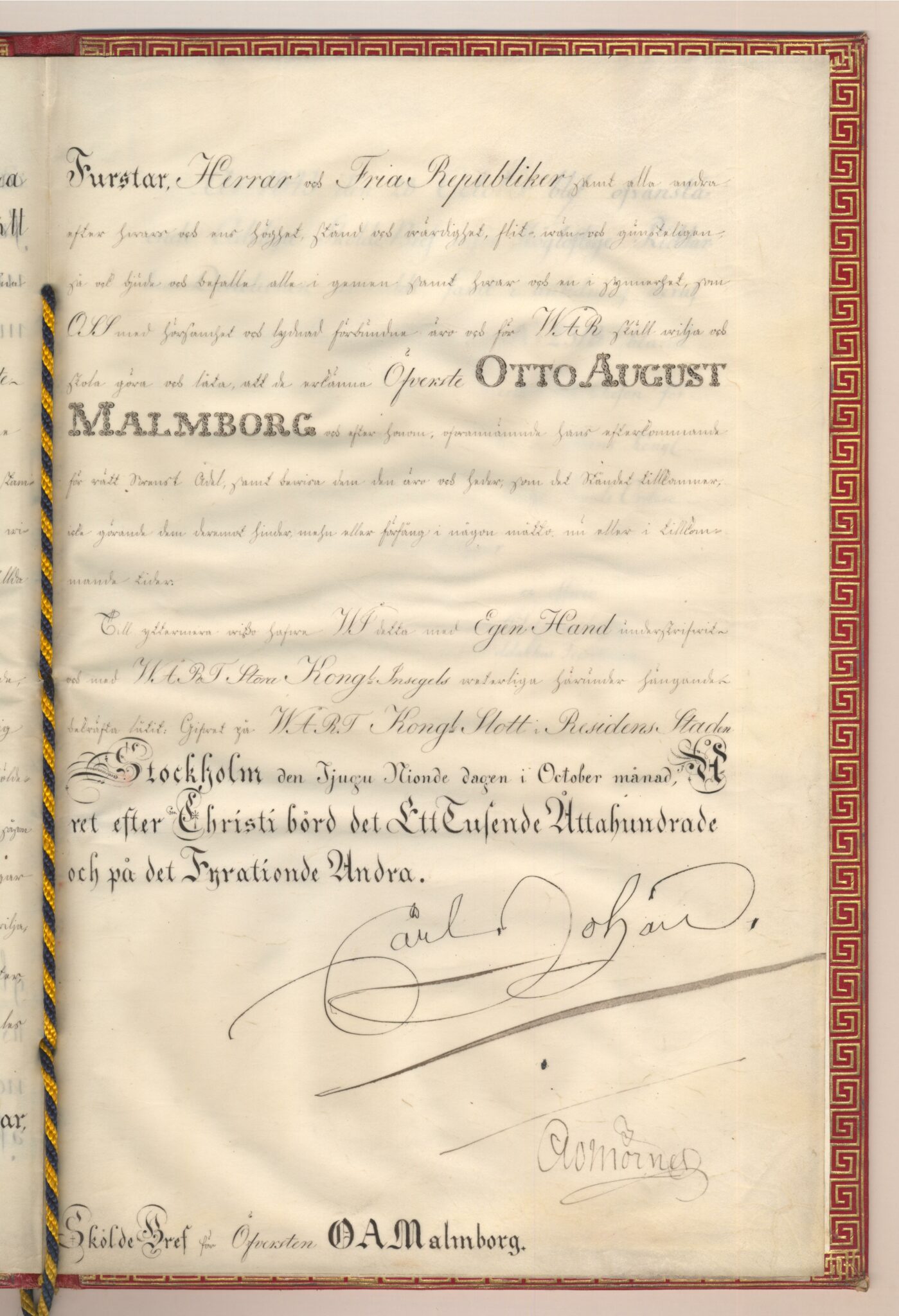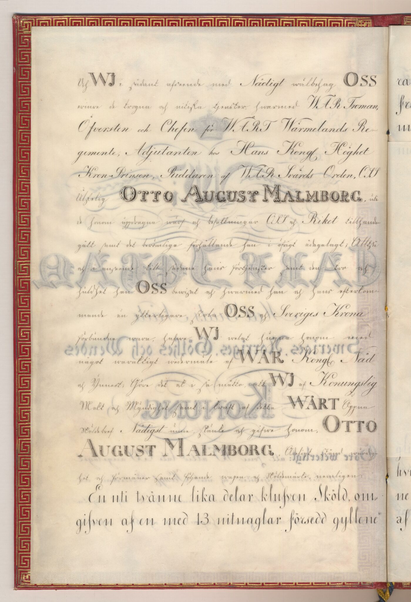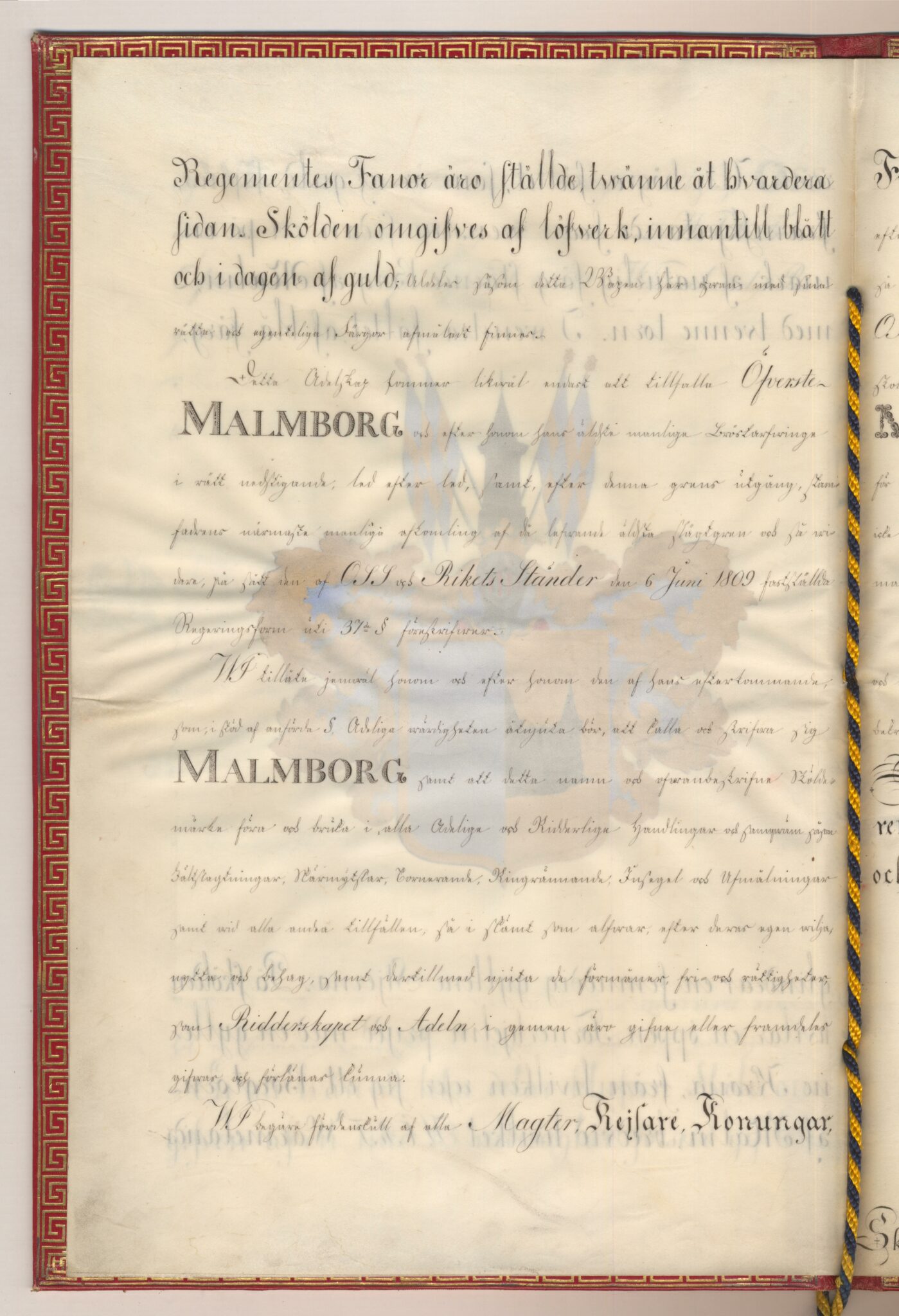 Sköldebrevet i original för adliga ätten Malmborg, nr 2318.
