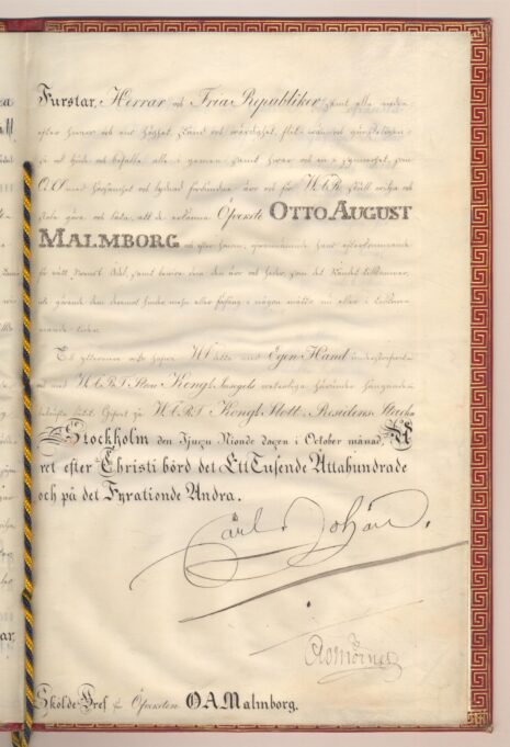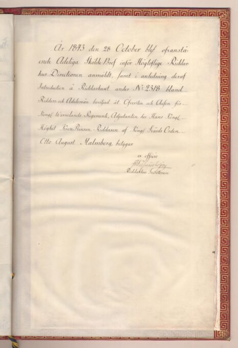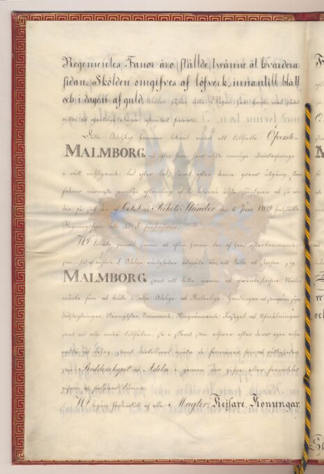 Sköldebrevet i original för adliga ätten Malmborg, nr 2318.