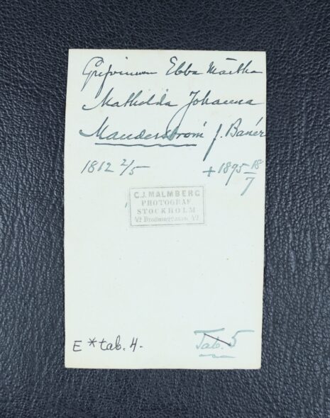 Manderström, EBBA Märta Matilda Johanna, född friherrinna Banér, nr 22. Född 1812-05-02. Död 1895-07-18.