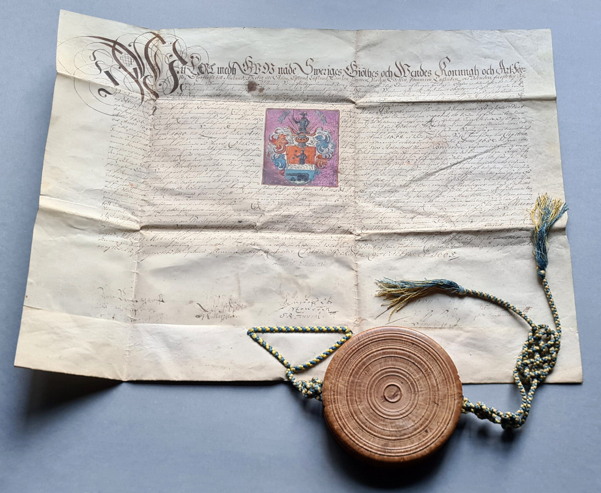 Sköldebrevet i original för adliga ätten Mannerfelt, nr 775.