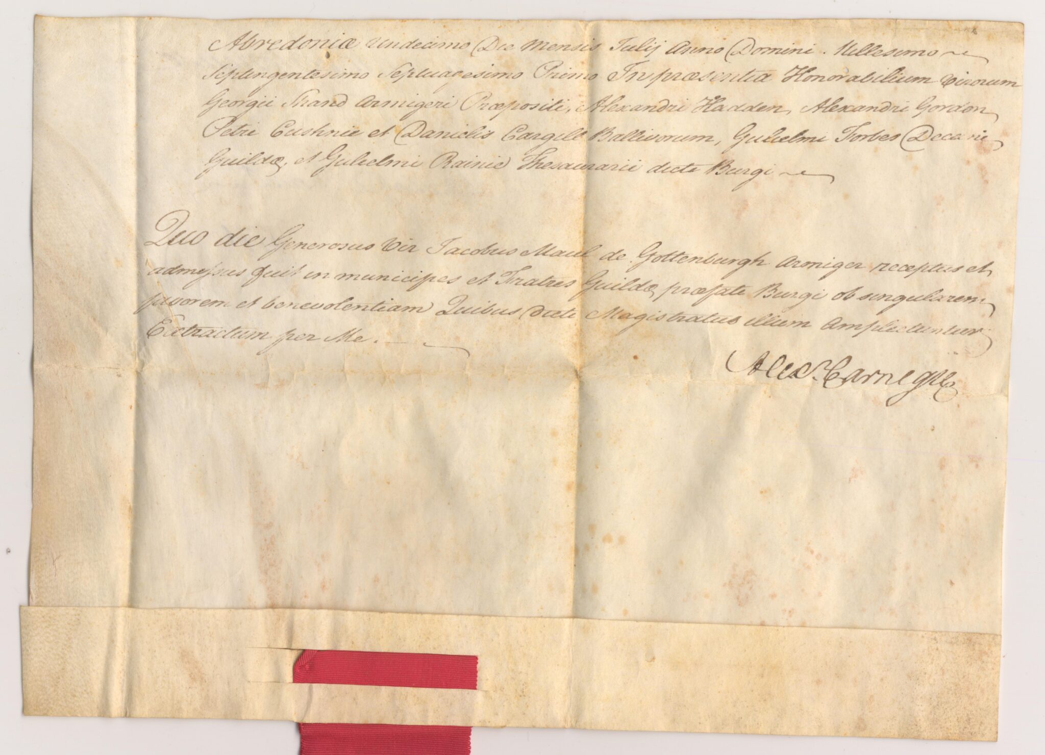 Utfärdat: (Alex Canegie?), Aberdeen, 1771.