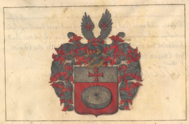 Sköldebrevet i original för utdöda adliga ätten Meldercreutz, nr 1607.