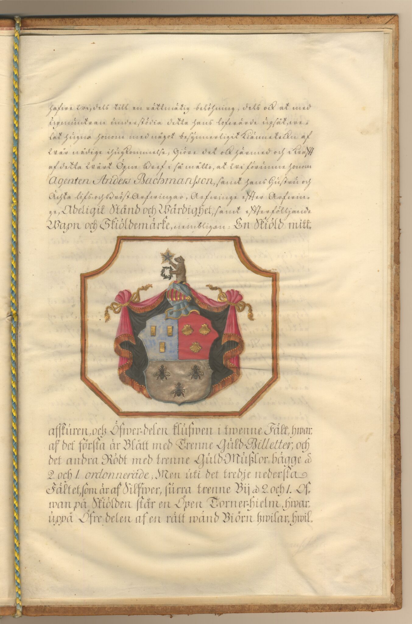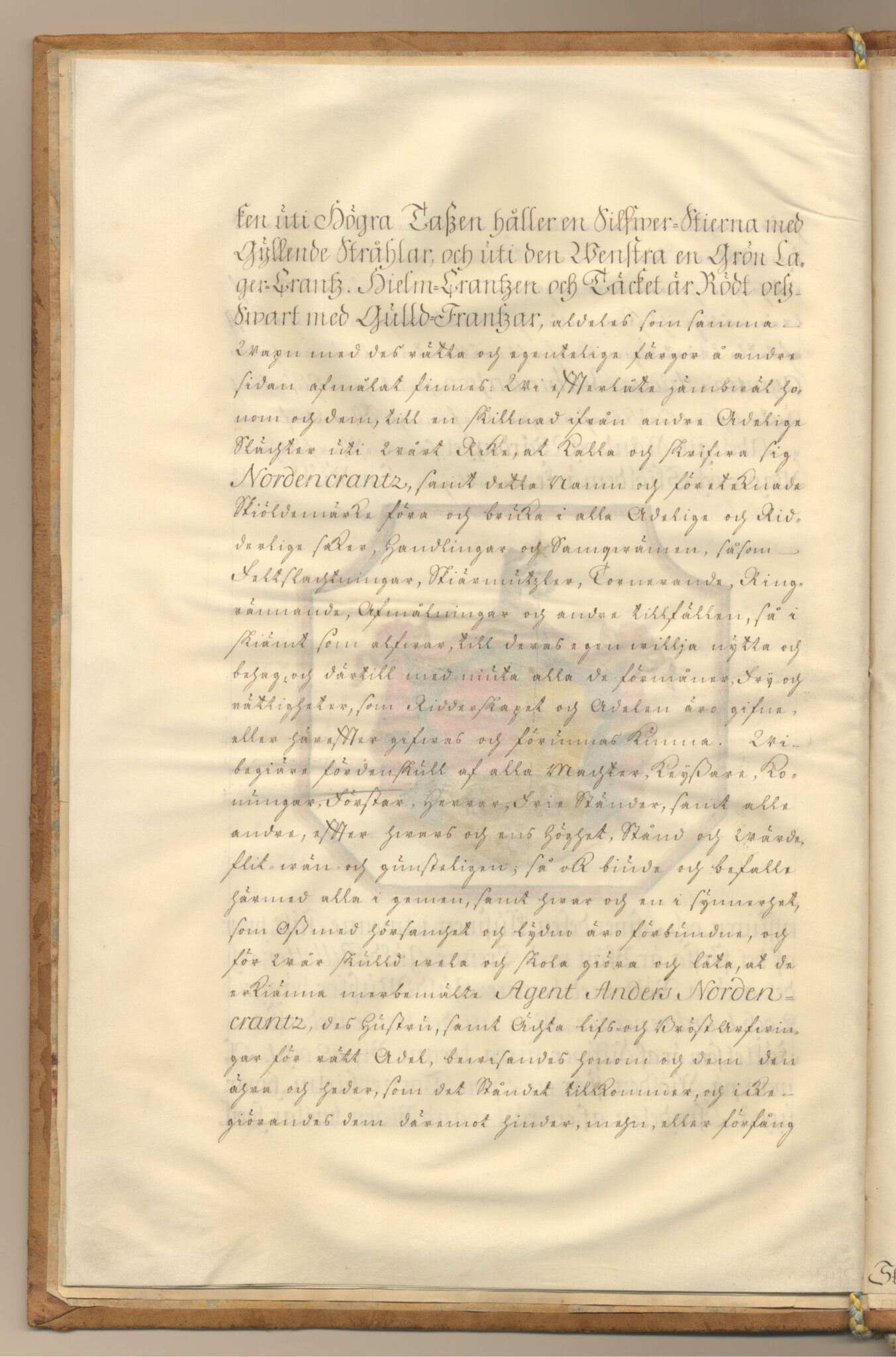 Sköldebrevet i original för utdöda adliga ätten Nordencrantz, nr 1891.