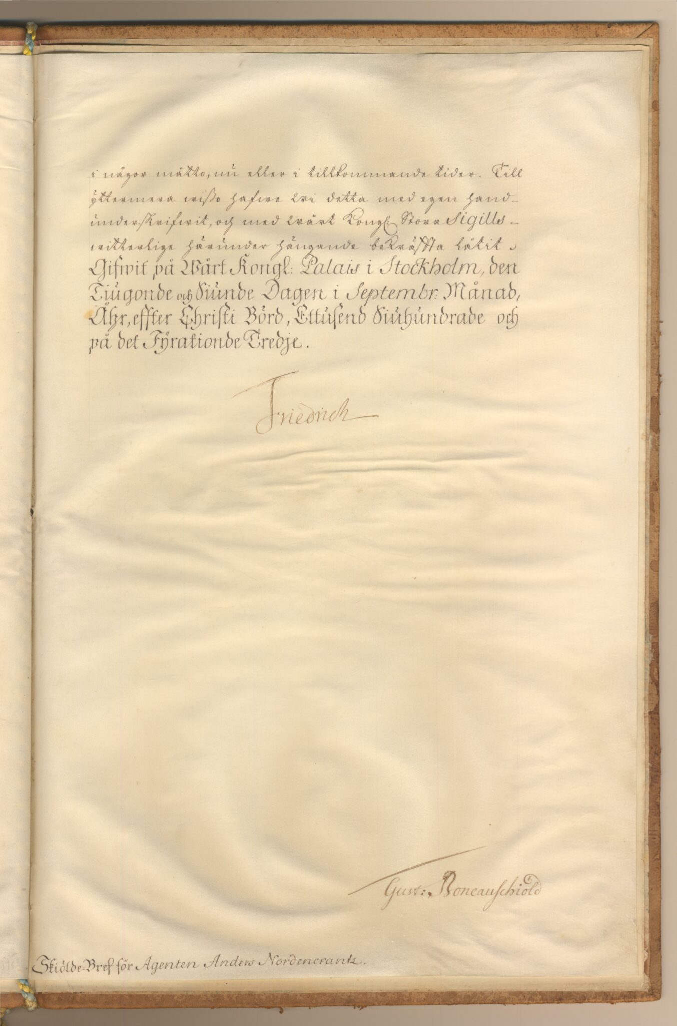 Utnämnd och utfärdat: Fredrik I, Palatset i Stockholm, 1743-09-27.