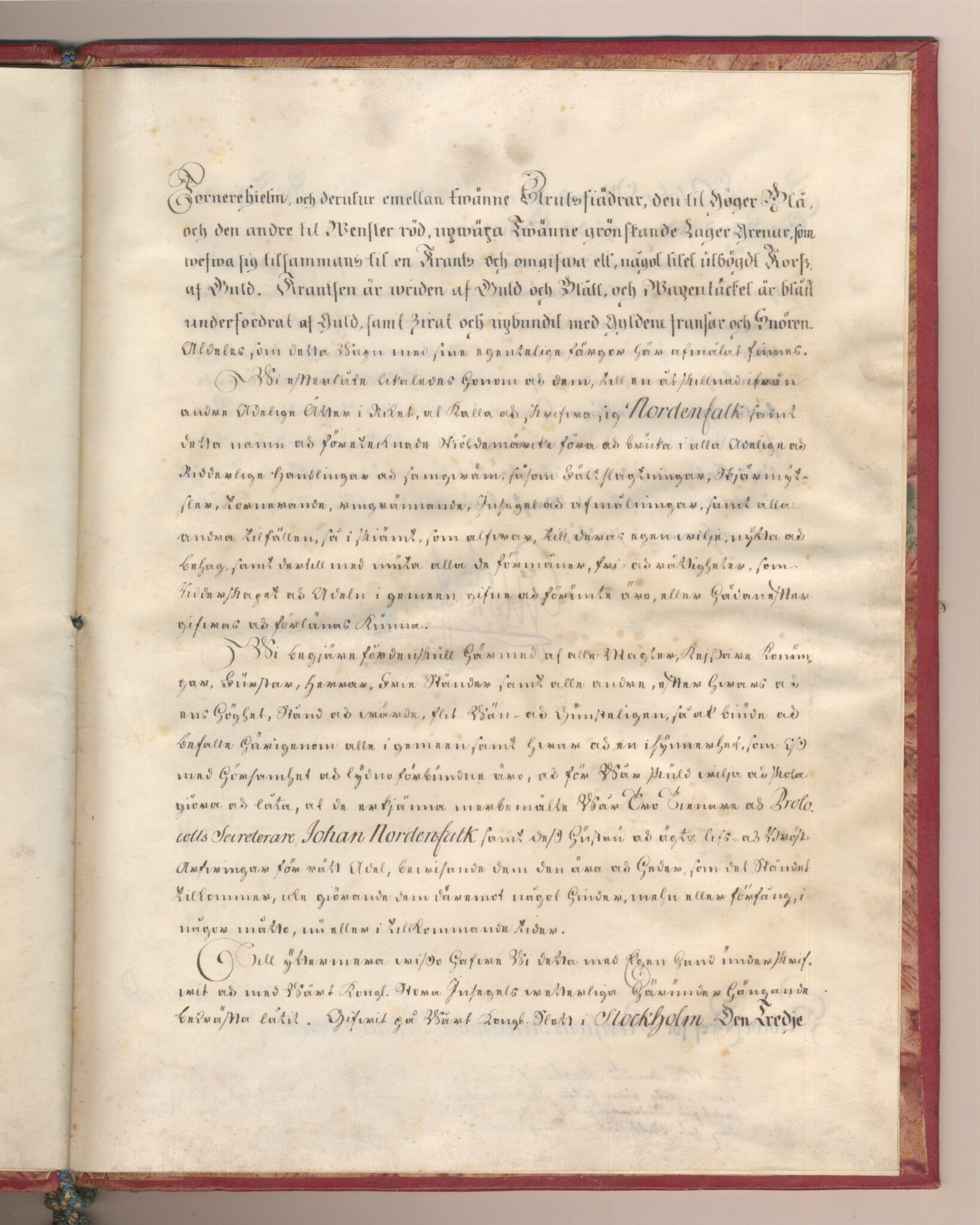Sköldebrevet i original för adliga ätten Nordenfalk, nr 2063.