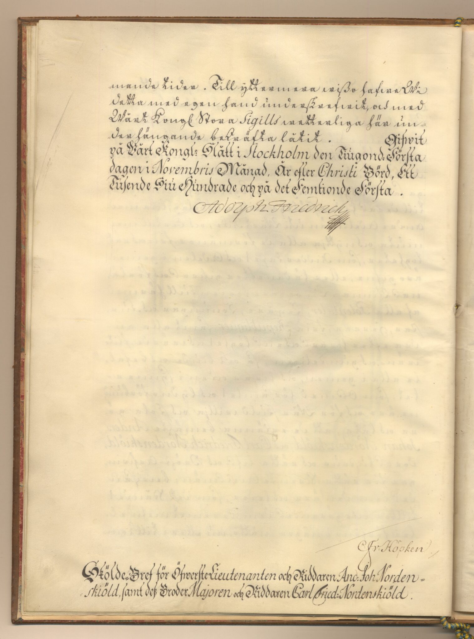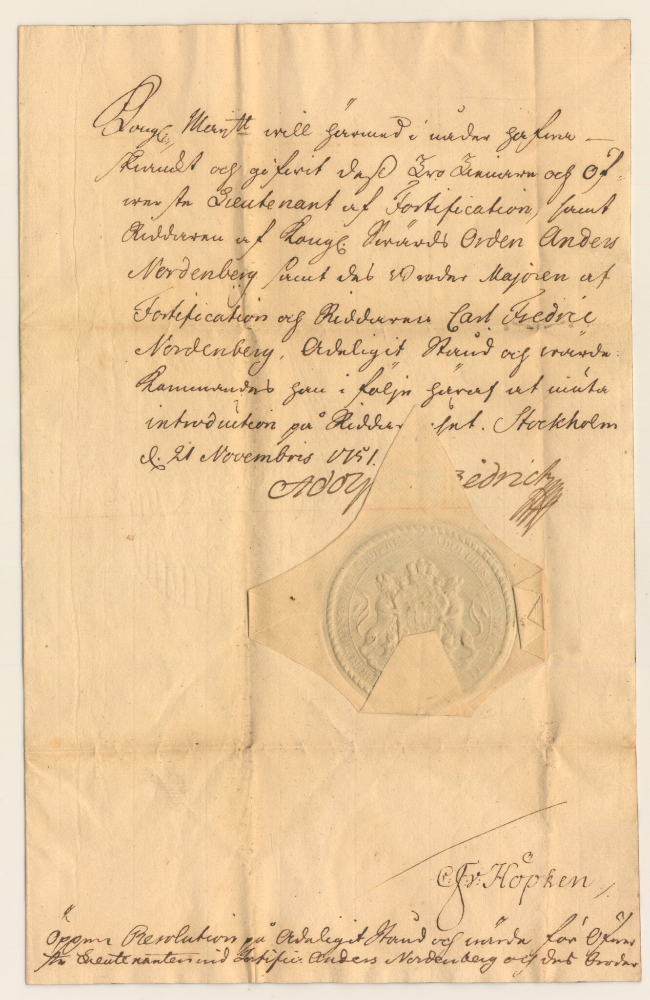 Utnämnd och utfärdat: Adolf Fredrik, Stockholms slott, 1751-11-21.
