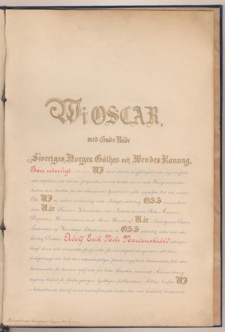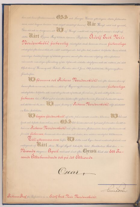 Friherrebrevet i original för friherrliga ätten Nordenskiöld, nr 405.