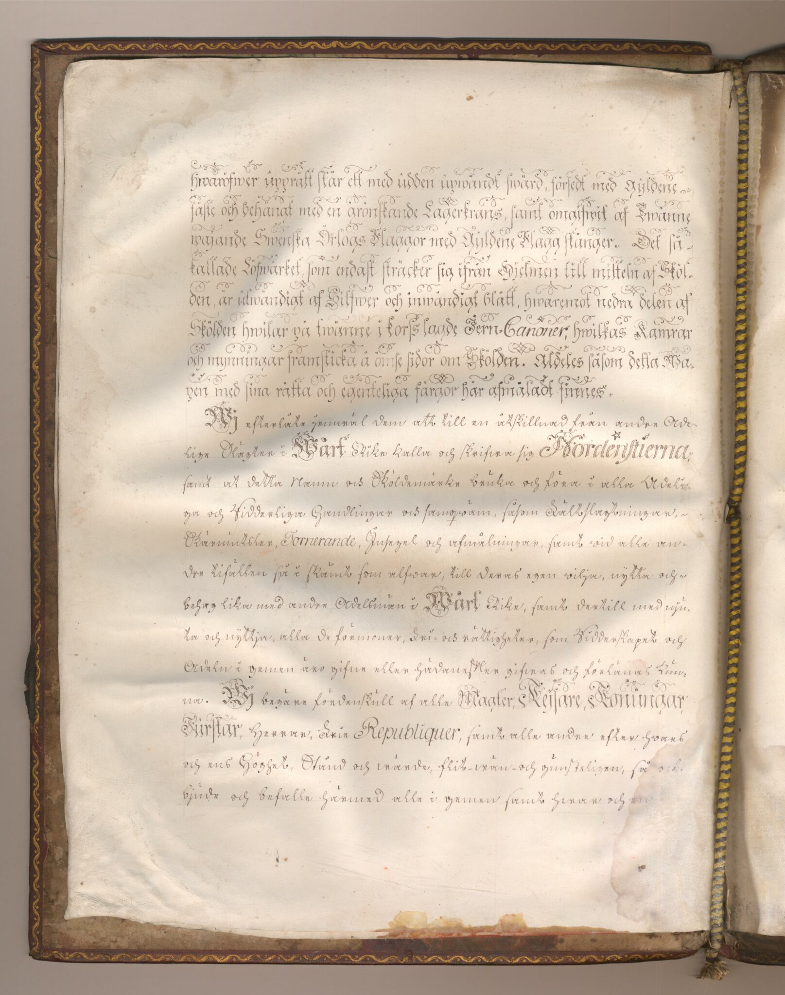 Sköldebrevet i original för utdöda adliga ätten Nordenstierna, nr 2165.