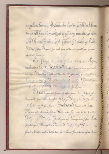 Sköldebrevet i original för utdöda adliga ätten Nordewall, nr 2257.
