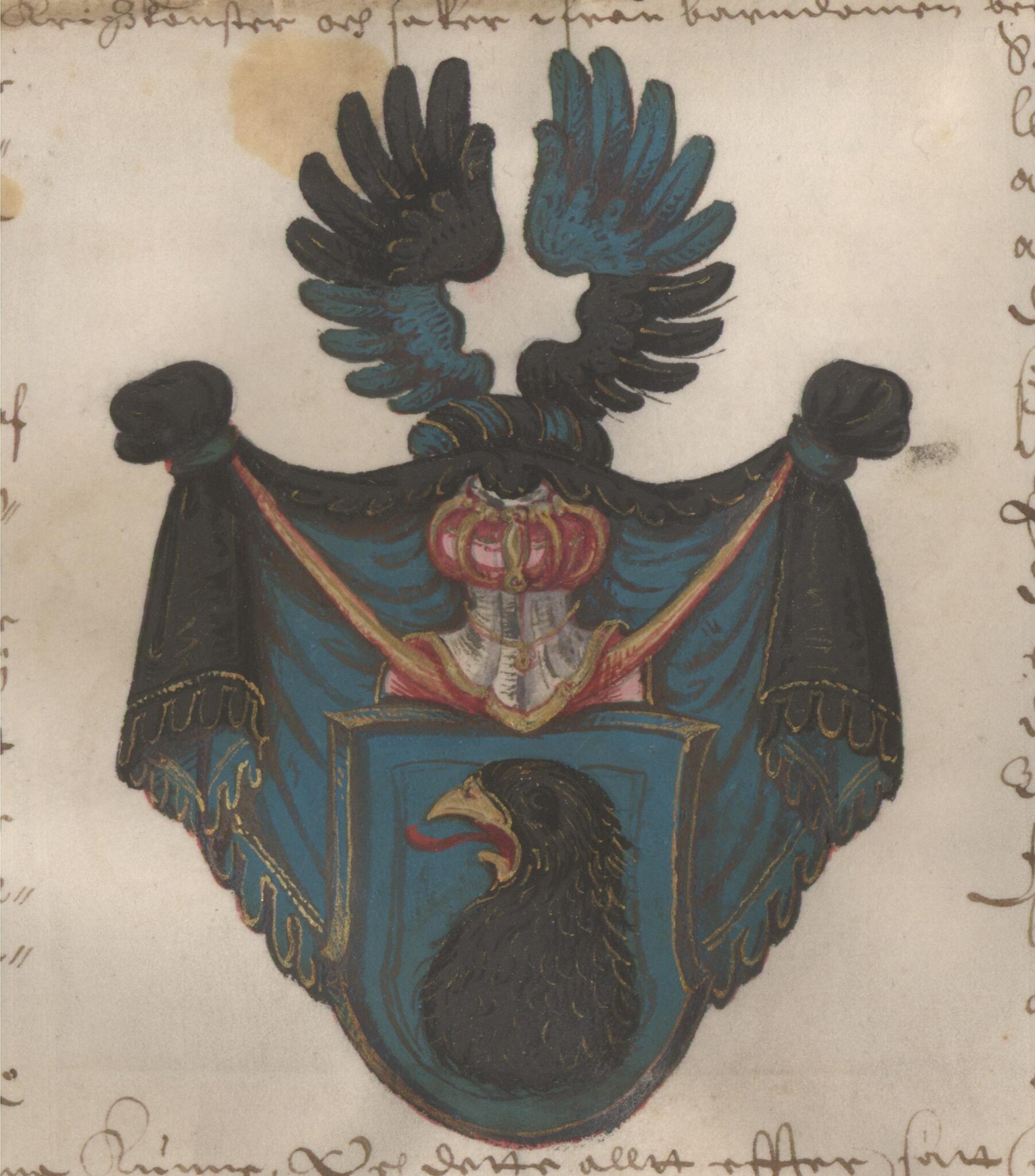Sköldebrevet i original för utdöda adliga ätten Örnehufvud, nr 235.