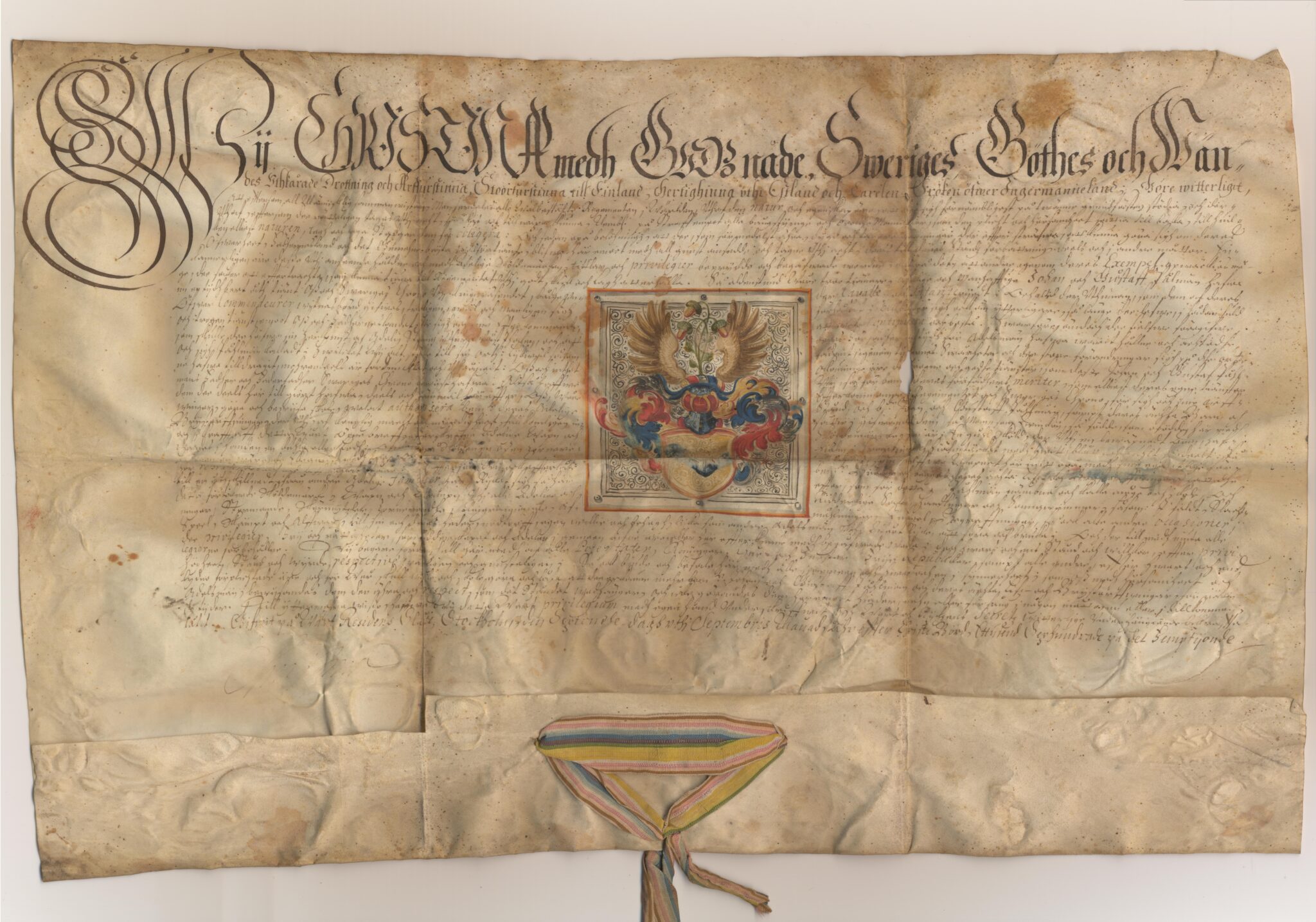 Sköldebrevet i original för adliga ätten Påhlman, nr 501.