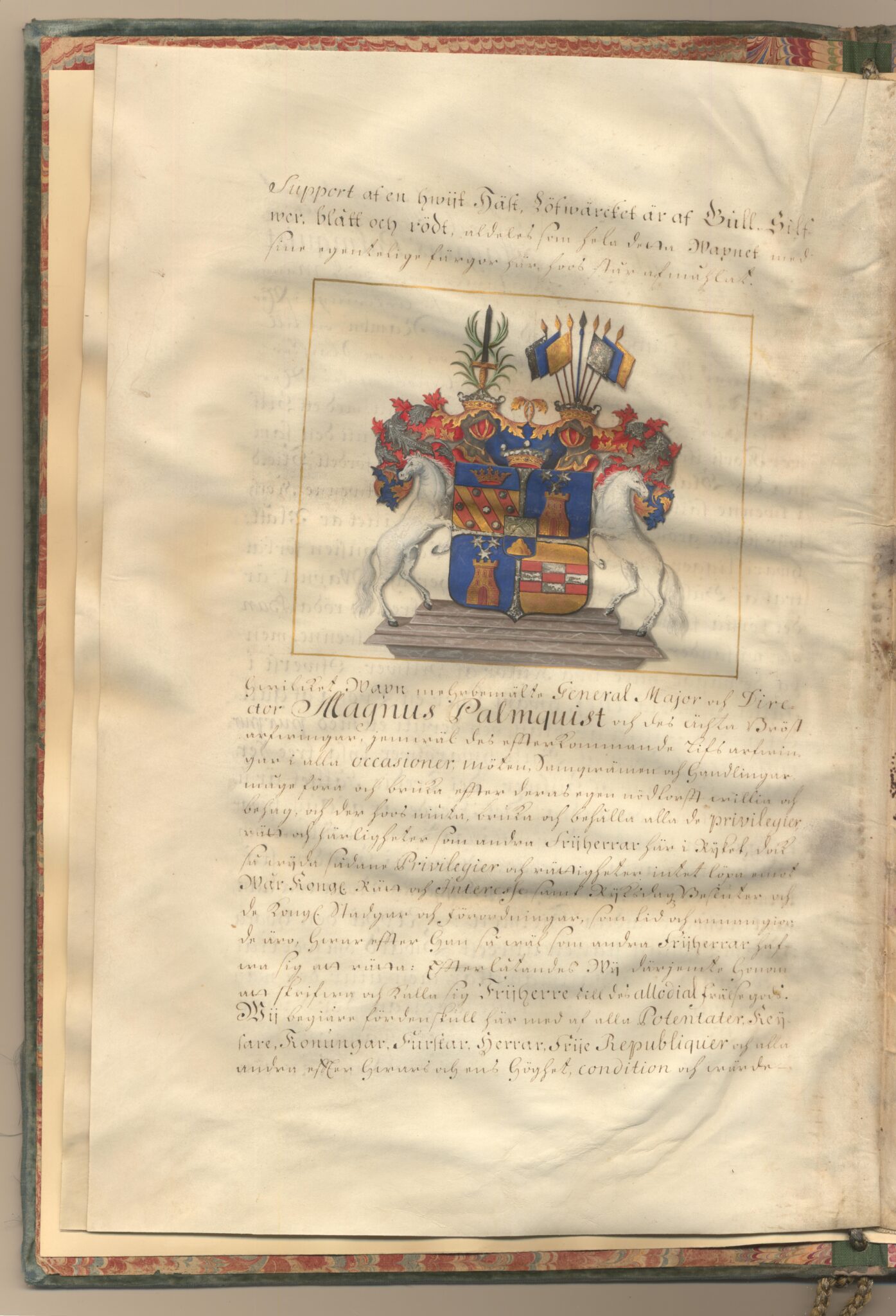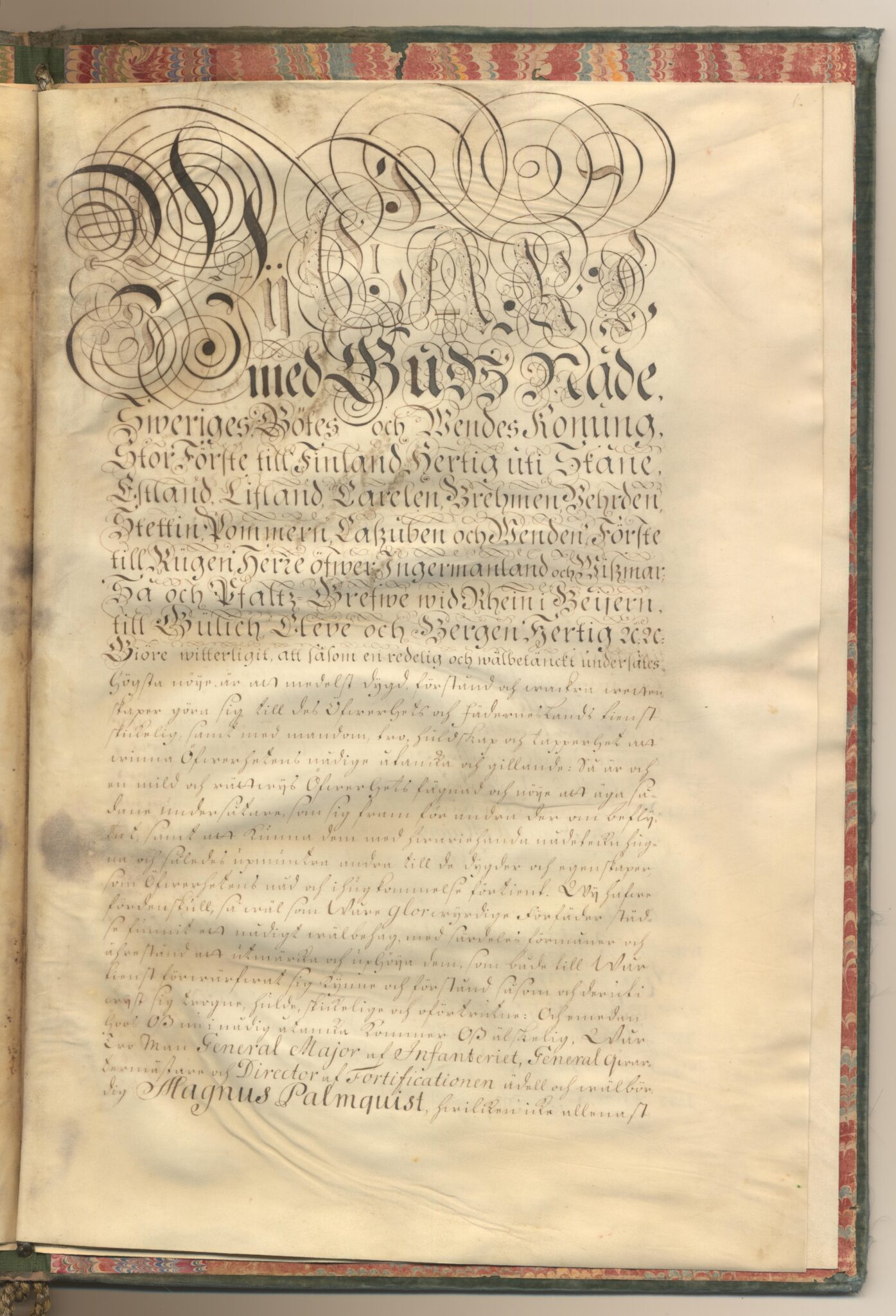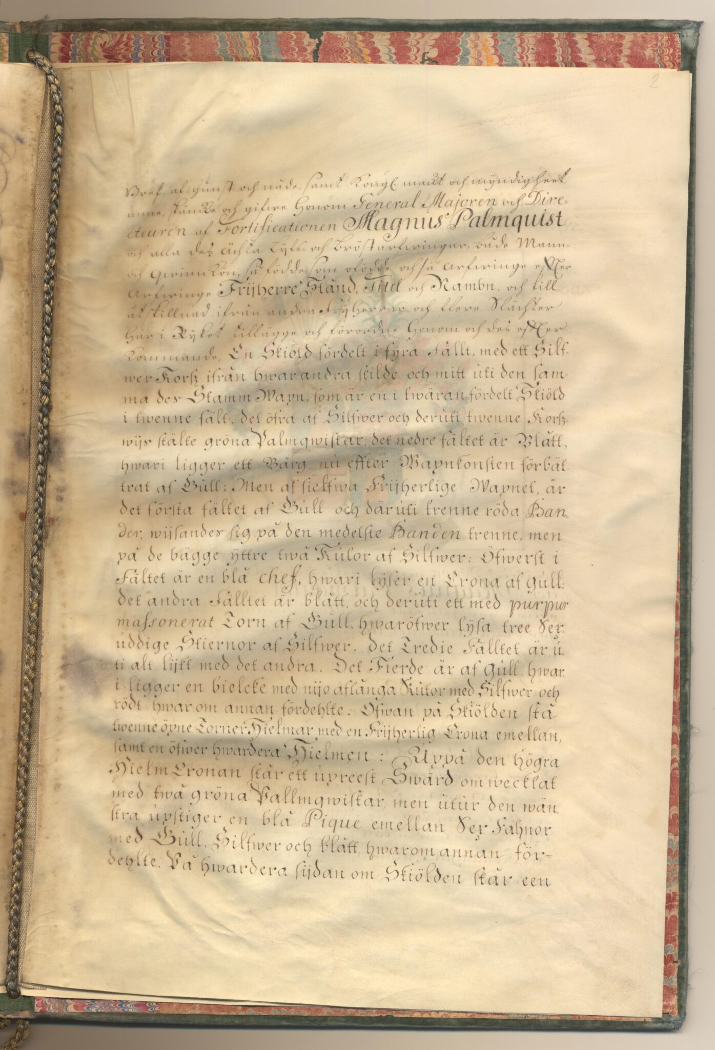 Friherrebrevet i original för utdöda friherrliga ätten Palmqvist, nr 123.