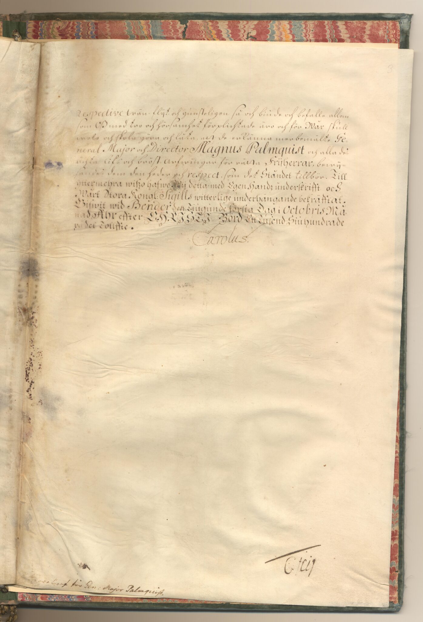 Utnämnd och utfärdat: Karl XII, Bender, 1712-10-21.