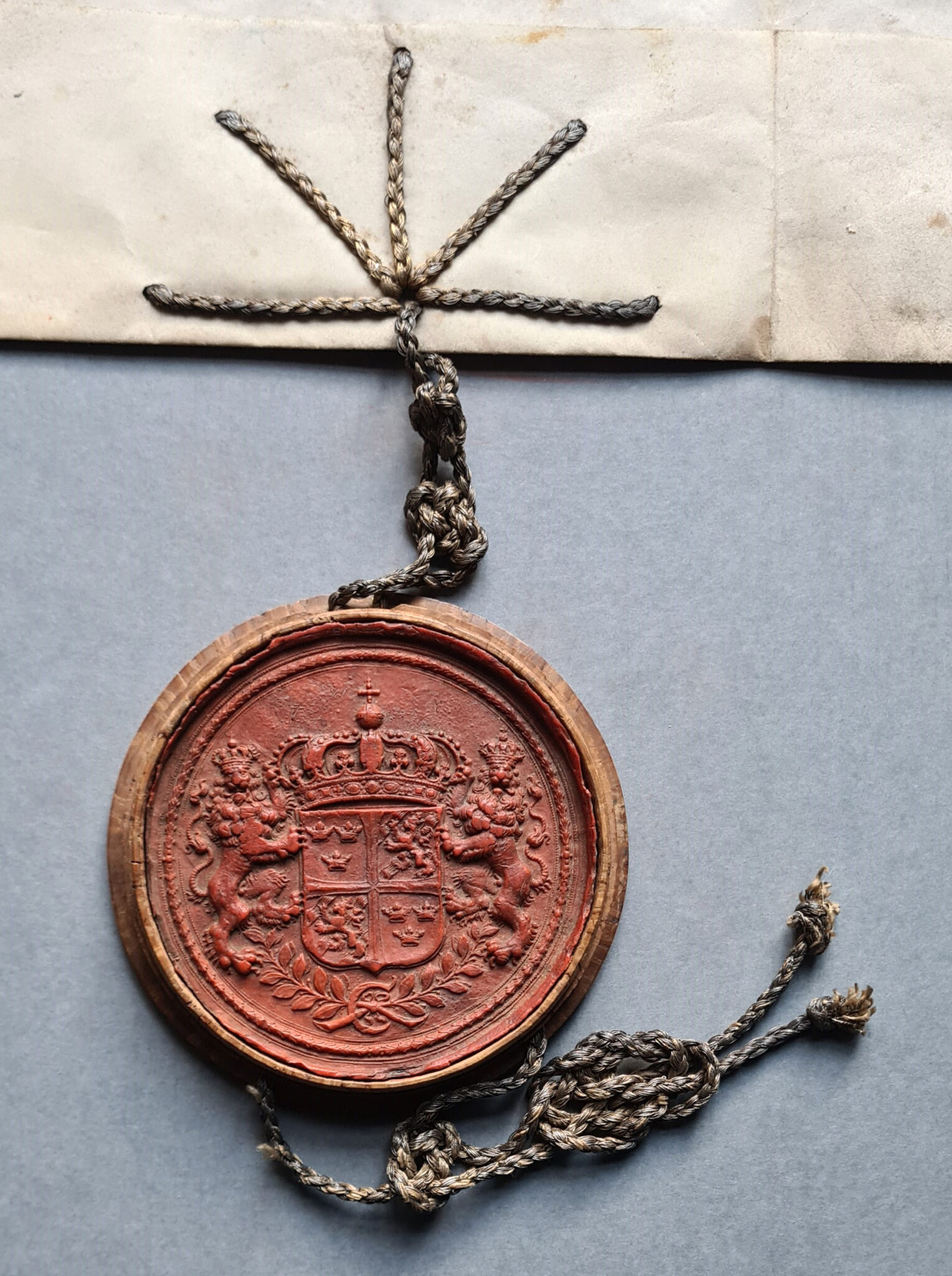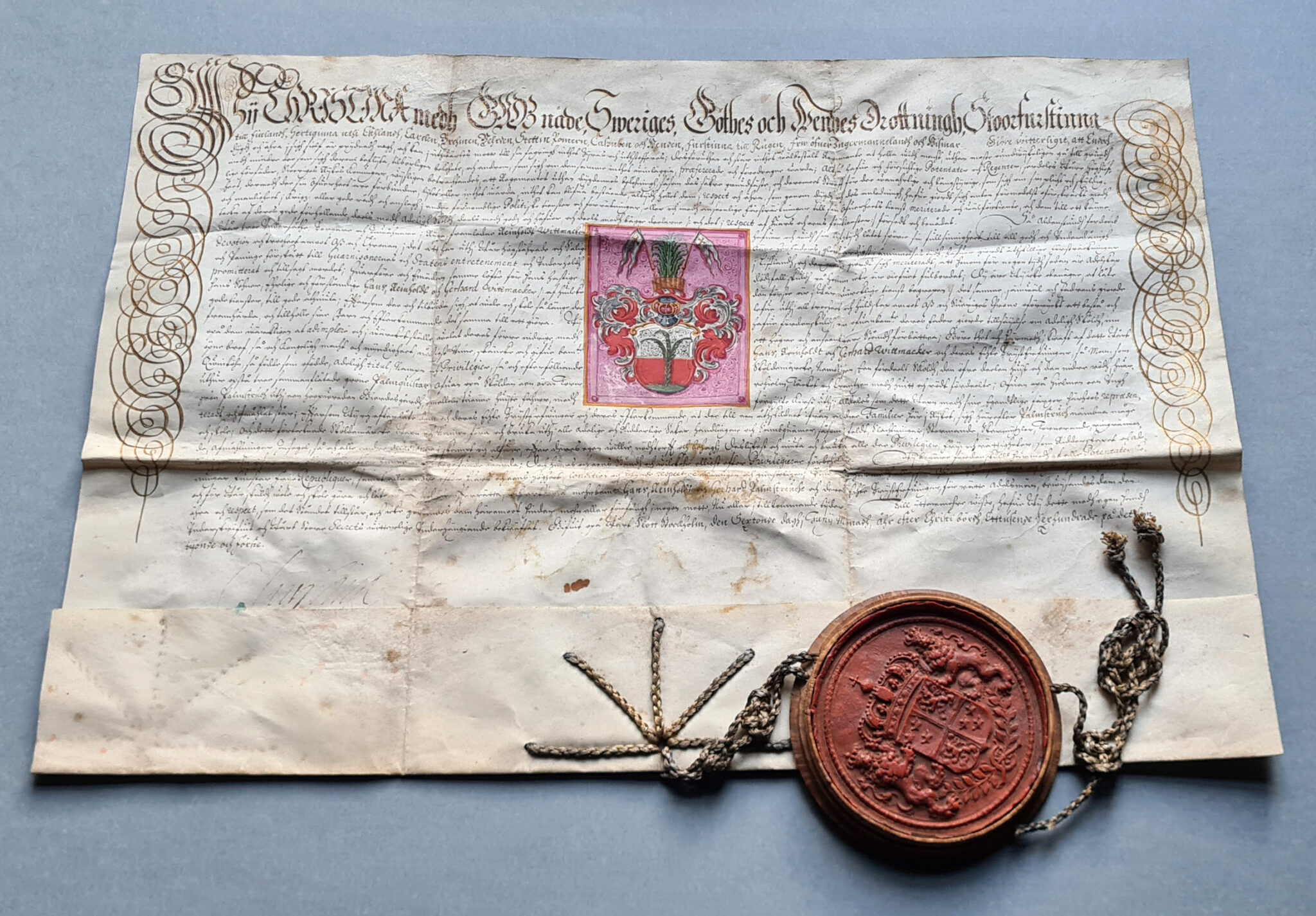 Sköldebrevet i original för utdöda adliga ätten Palmstruch, nr 657.