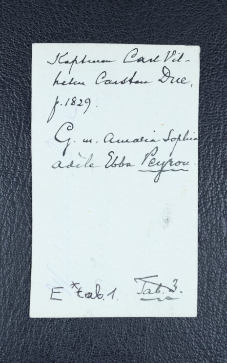 Due, Carl WILHELM Carsten, ingift Peyron, nr 392. Född 1829-12-23. Död 1918-04-13.
