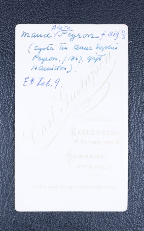 Peyron, MAUD Aleta. Född 1869-03-31. Död 1890-04-15.