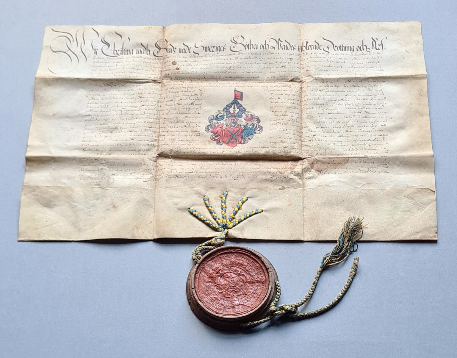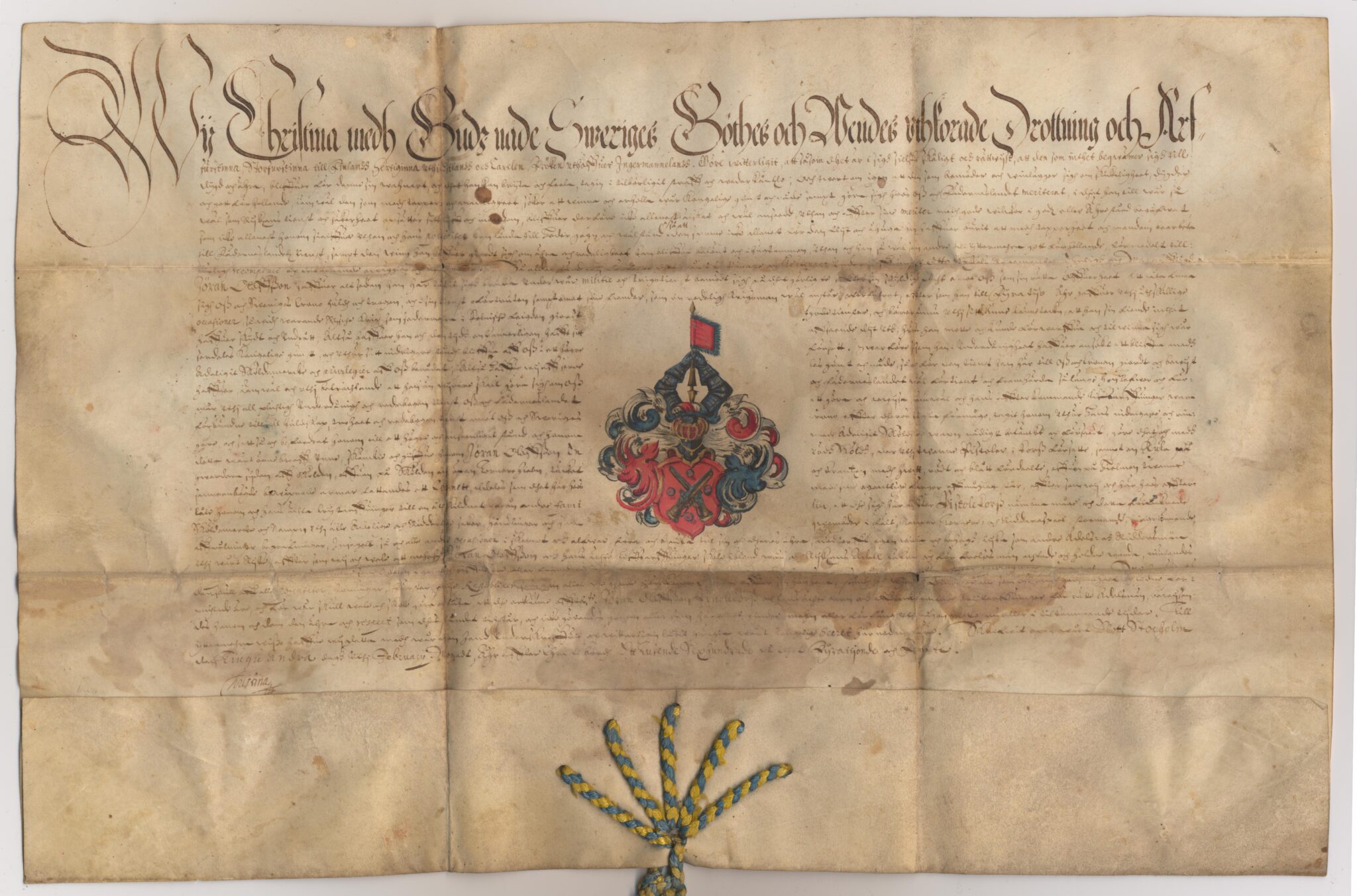 Sköldebrevet i original för adliga ätten Pistolekors, nr 321.