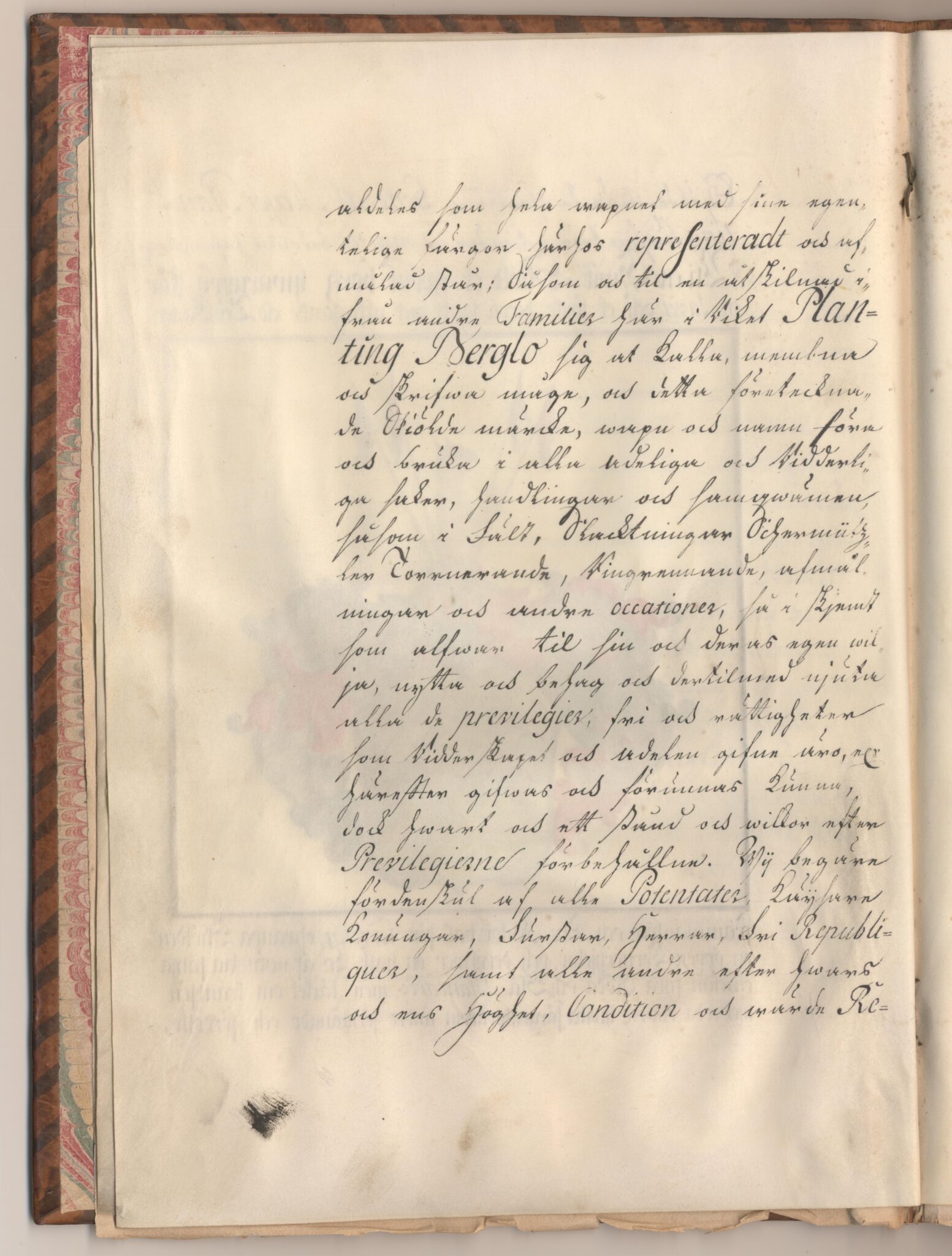 Sköldebrevskopia för adliga ätten Planting-Bergloo, nr 1016.