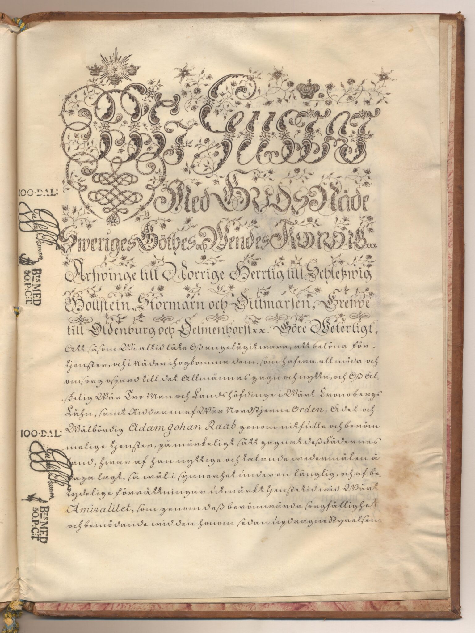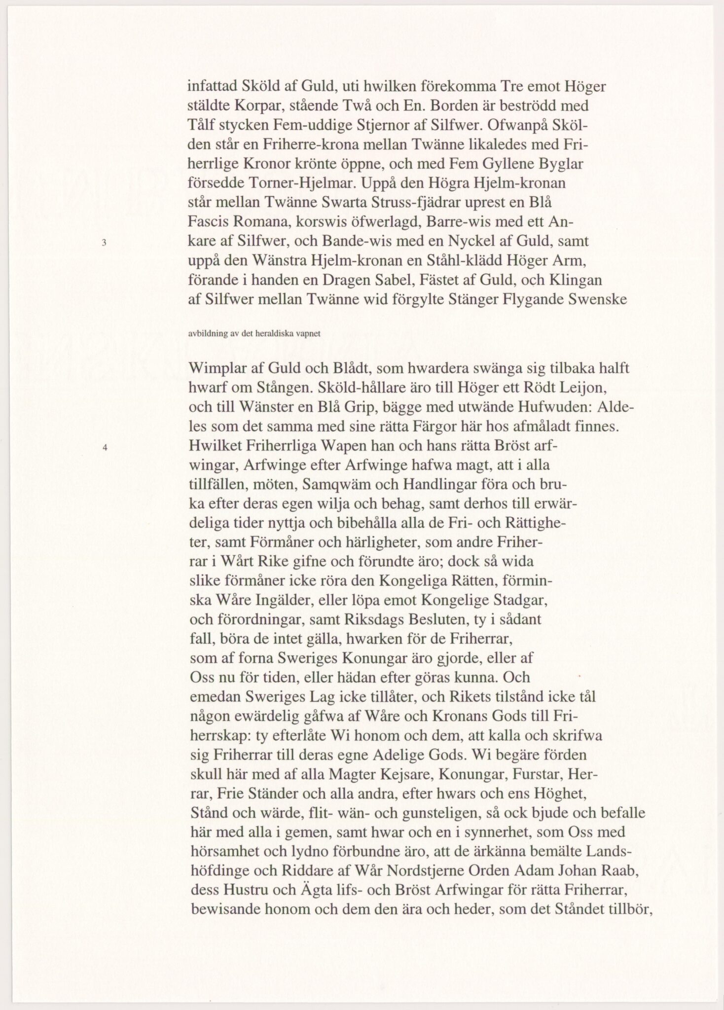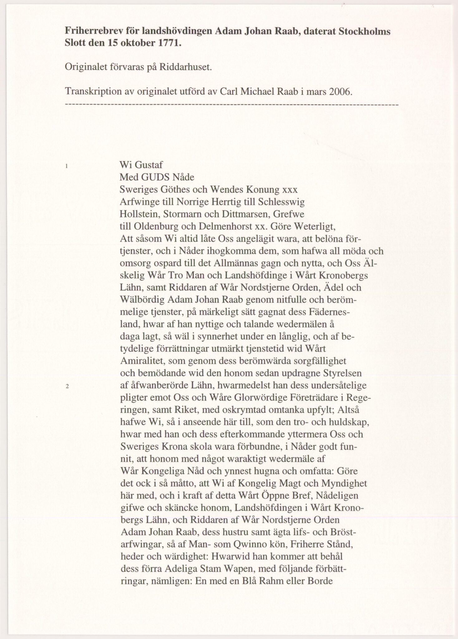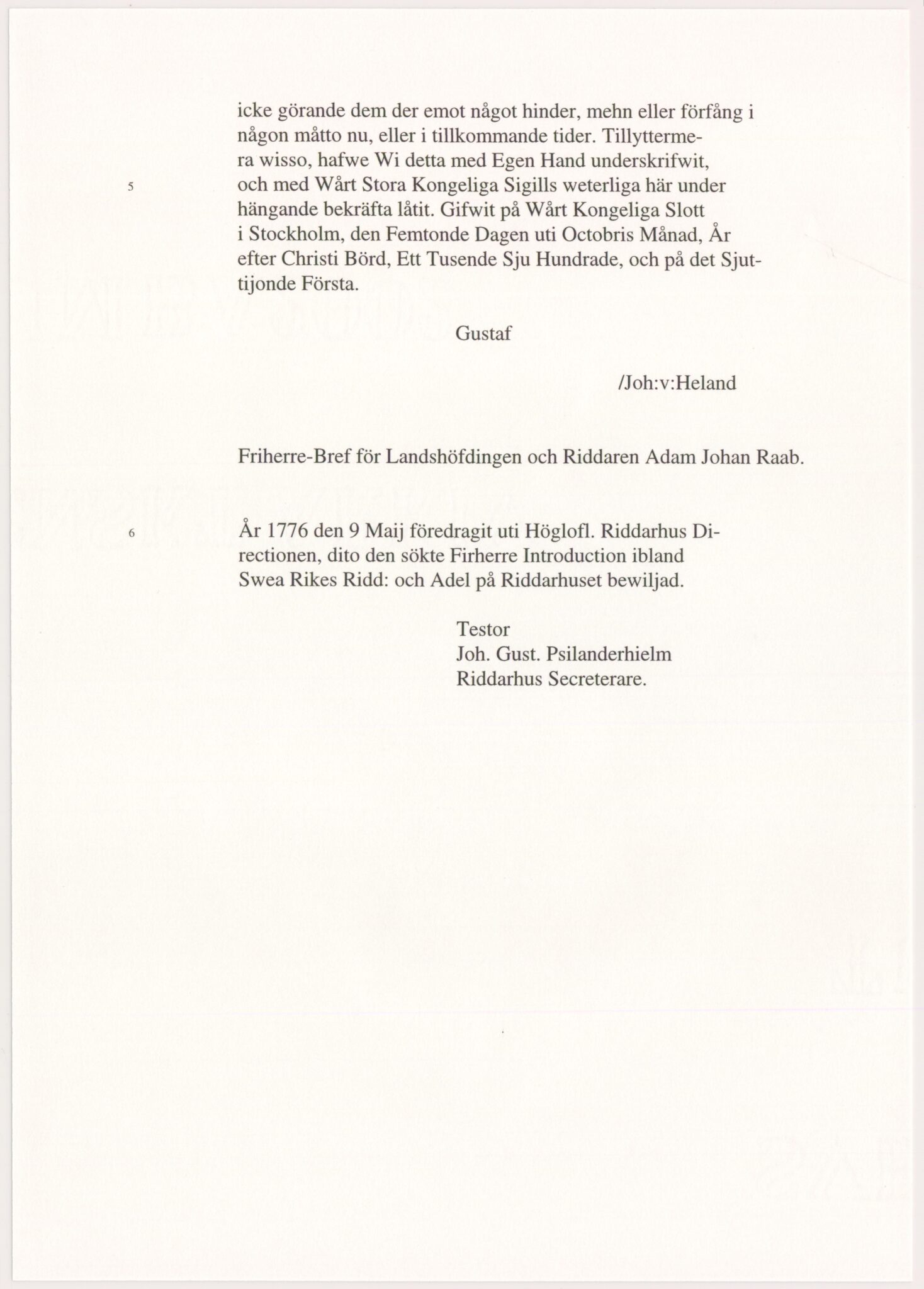 Friherrebrevet i original för friherrliga ätten Raab, nr 286.