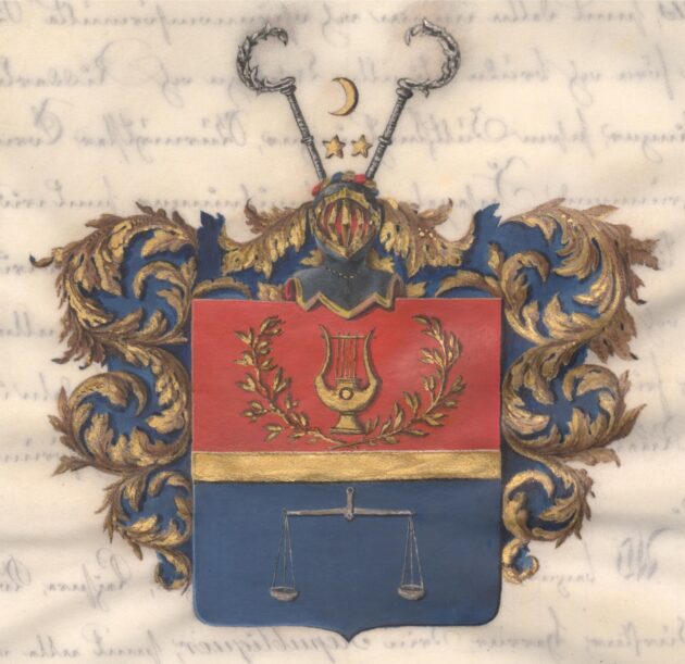 Sköldebrevet i original för adliga ätten Rabenius, nr 2311.