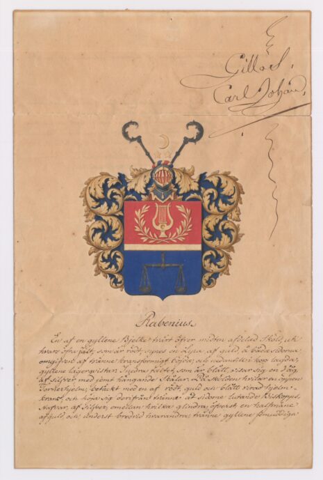 Approberad vapenritning för adliga ätten Rabenius, nr 2311.