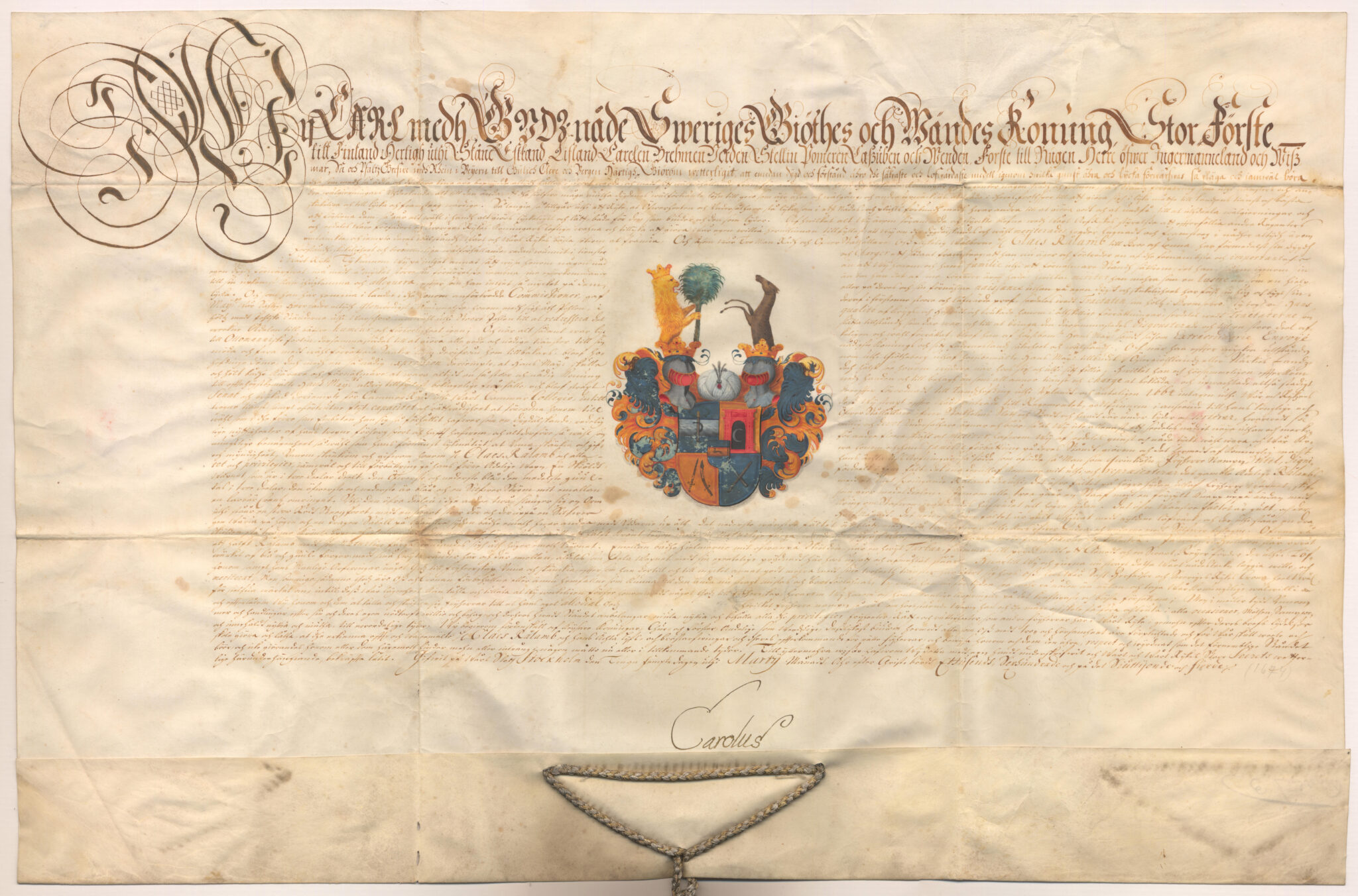 Friherrebrevet i original för friherrliga ätten Rålamb, nr 59.