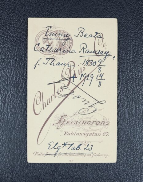 Ramsay, EMMY Beata Catharina, född Tham, nr 1508. Född 1830-08-09. Död 1929-08-14.