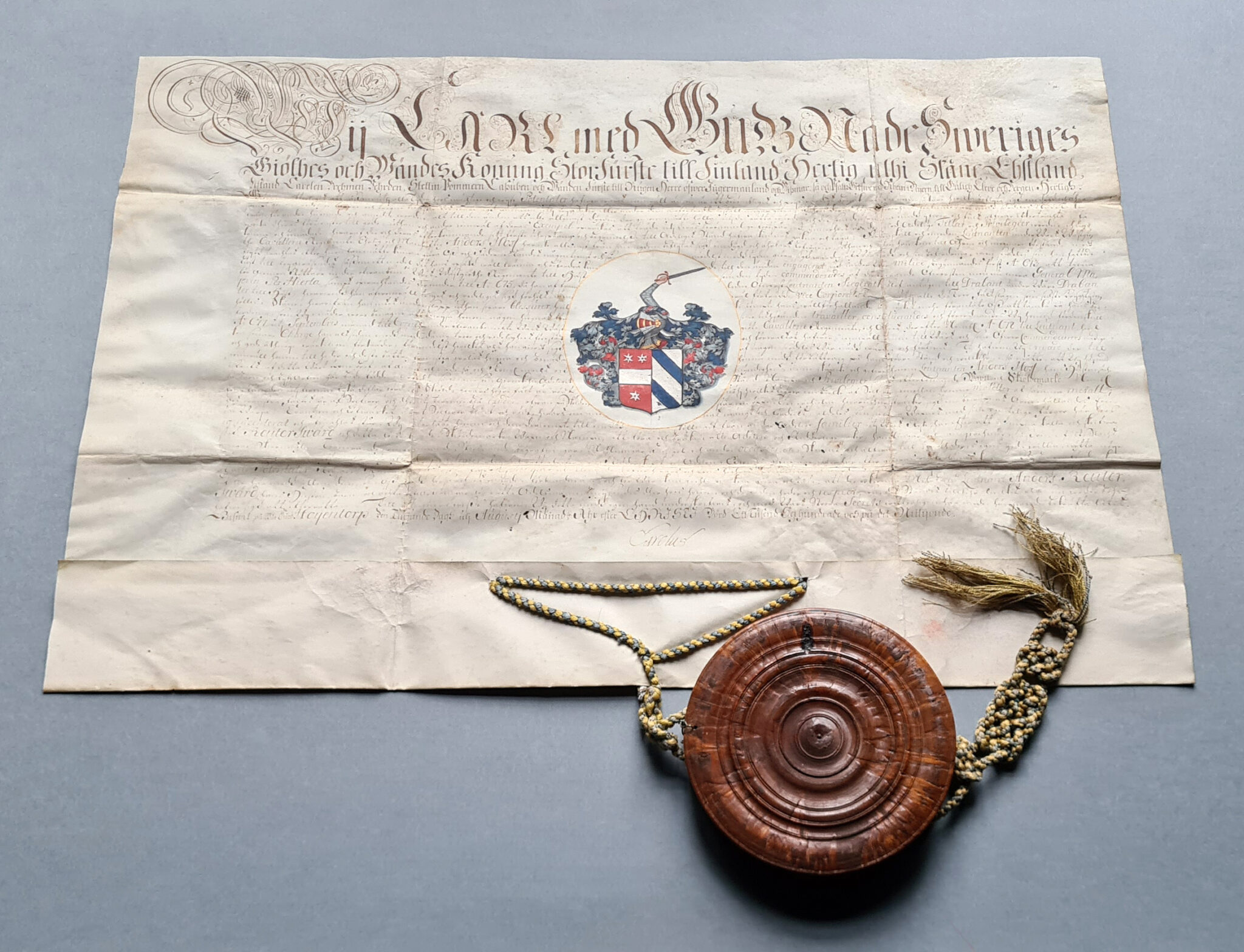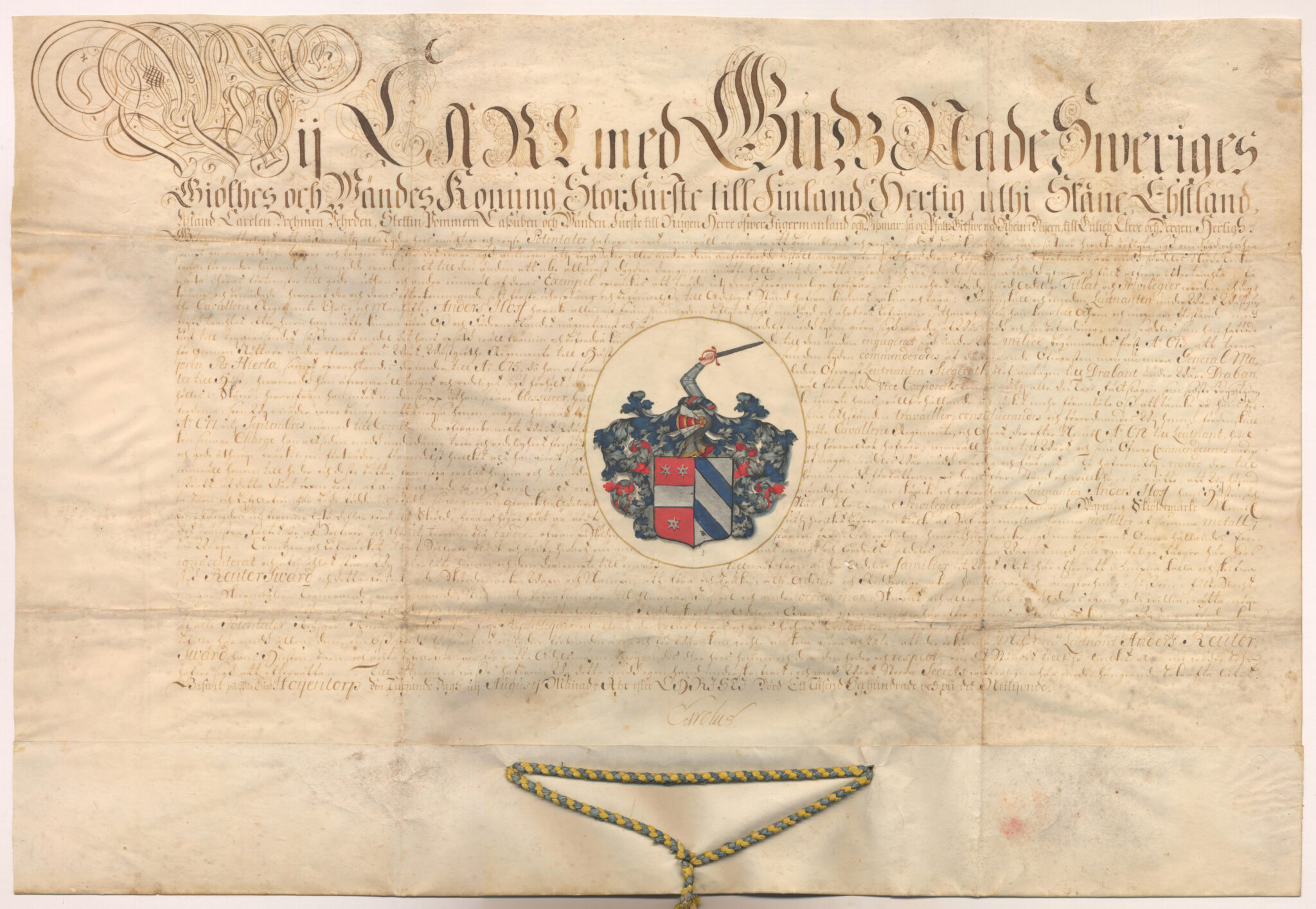Sköldebrevet i original för adliga ätten Reuterswärd, nr 1210.