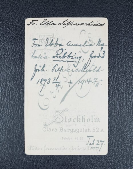 Ribbing, EBBA Amalia Natalia, född friherrinna Silfverschiöld, nr 283. Född 1873-11-21. Död 1914-11-07.