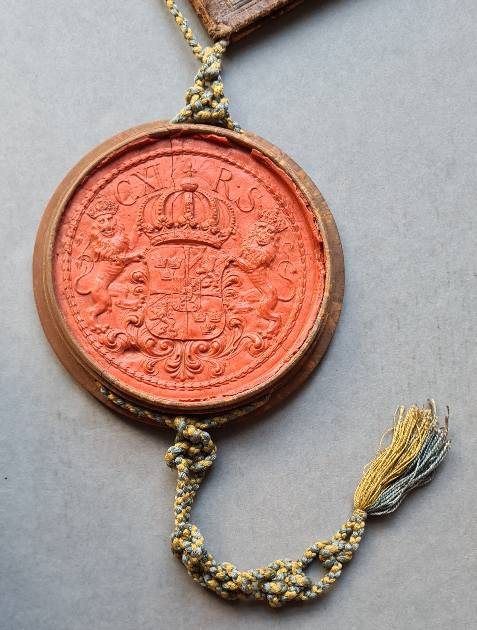 Sköldebrevet i original för utdöda adliga ätten Riddersvärd, nr 1220.