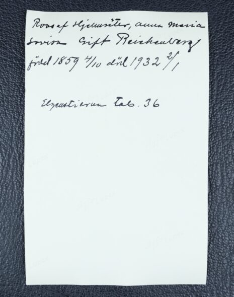 Roos af Hjelmsäter, Anna Maria Lovisa (MARIE LOUISE), gift Reichenberg. Född 1859-10-04. Död 1932-01-02.